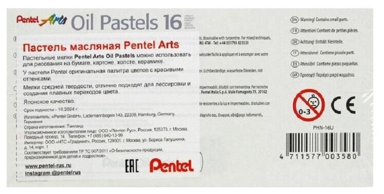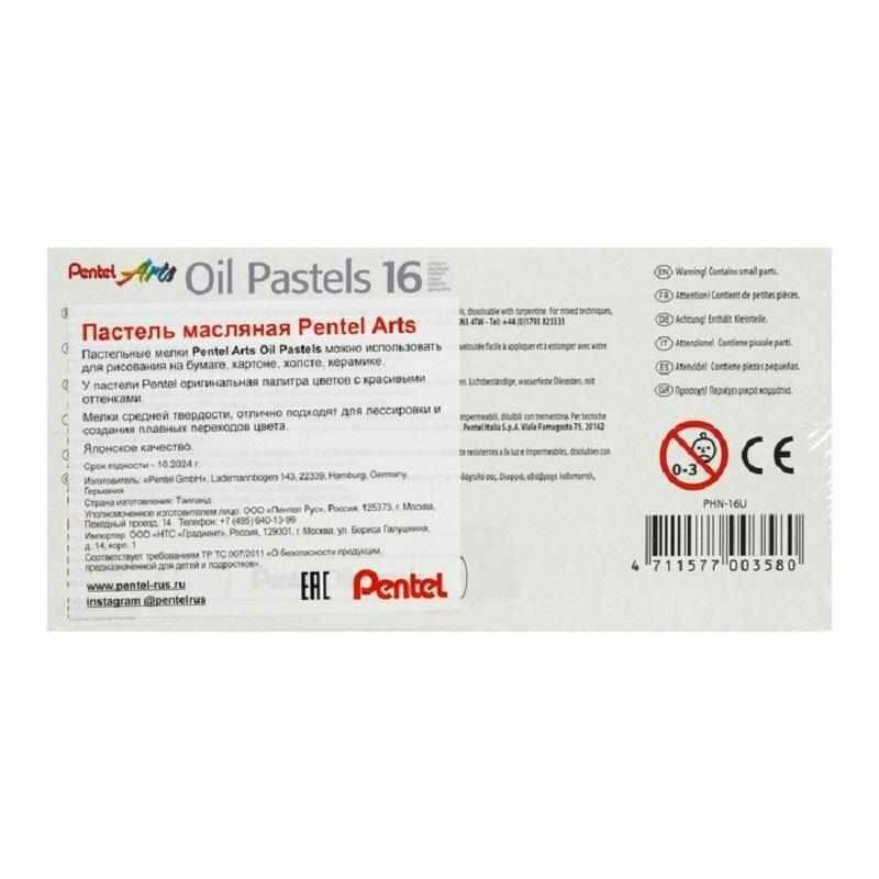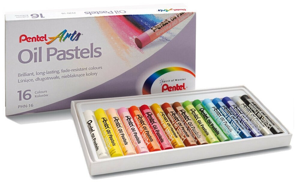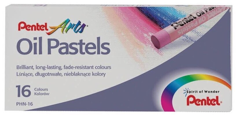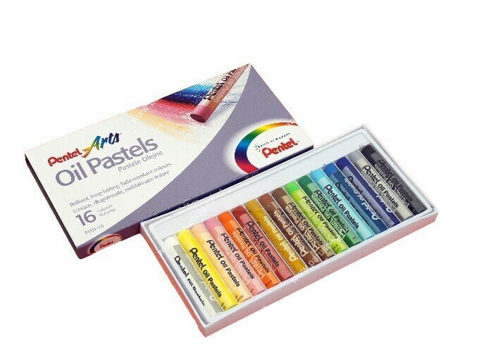 Пастель масляная художественная PENTEL "Oil Pastels", 16 цветов, круглое сечение, картонная упаковка, PHN4-16