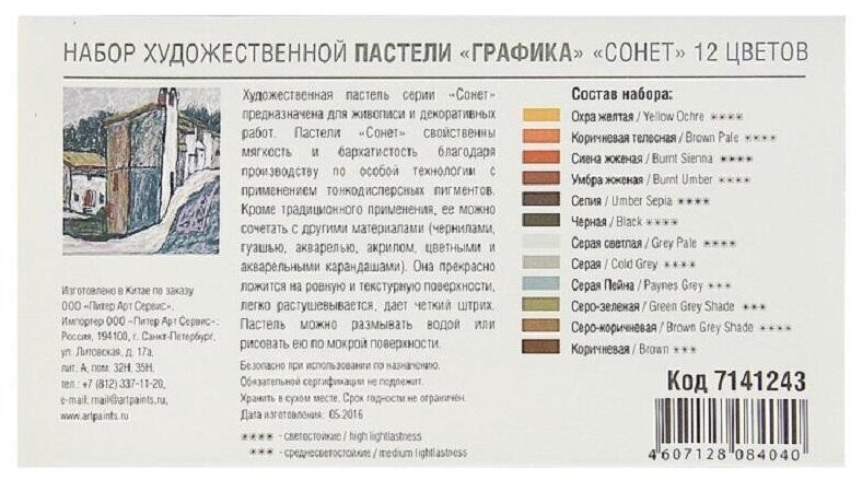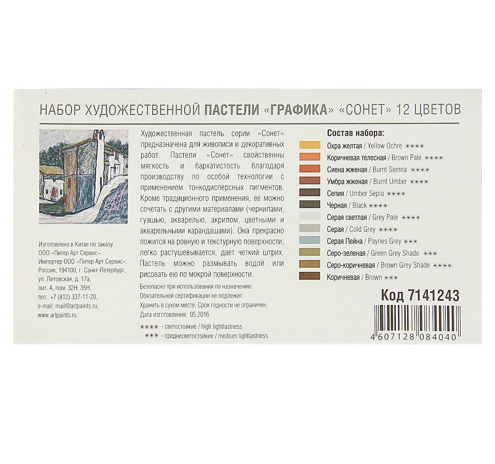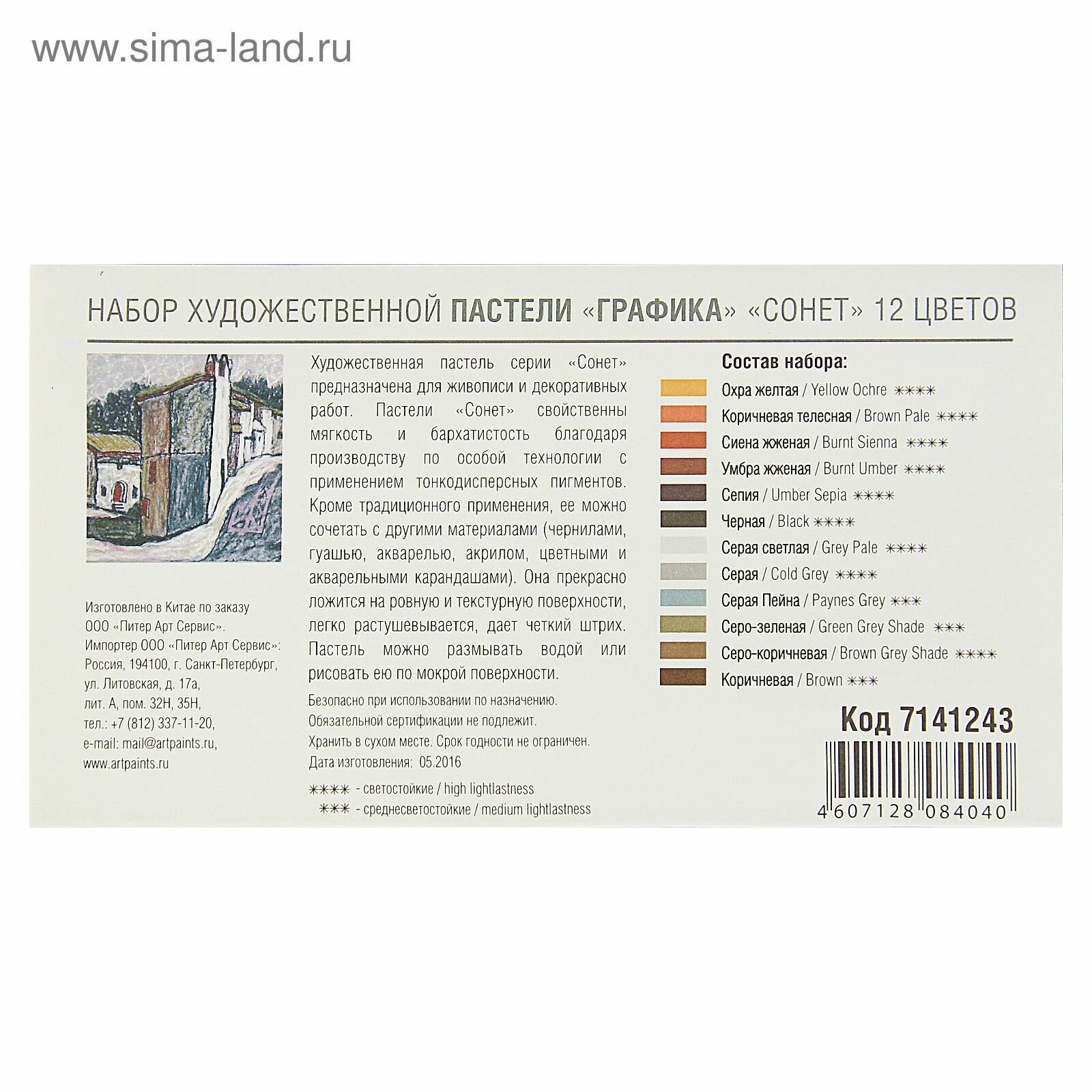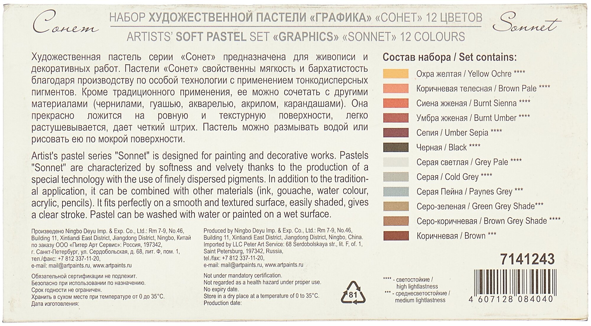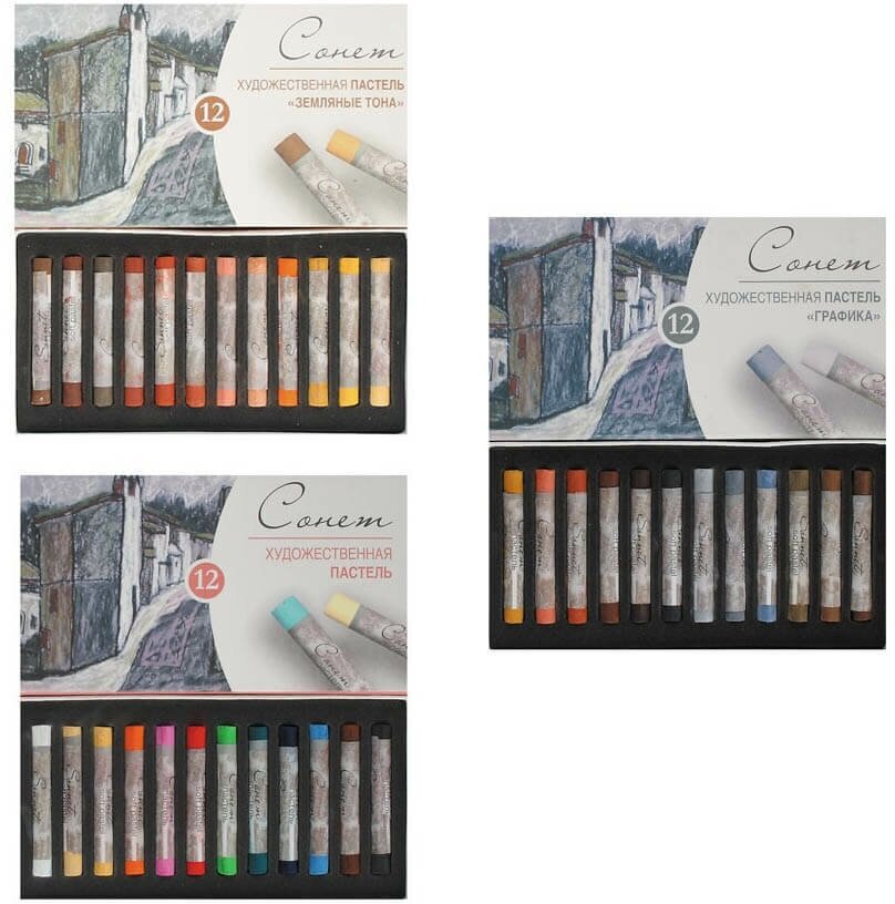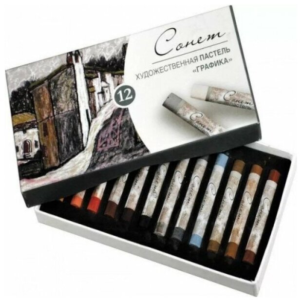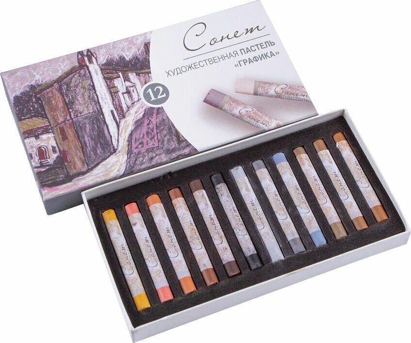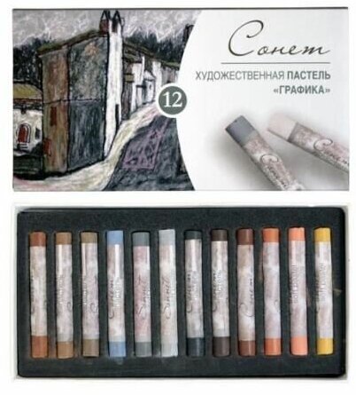 Пастель сухая художественная "Сонет" "Графика", 12 цветов, круглое сечение, 7141243