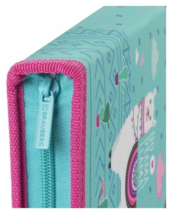 Тканевый пенал BRAUBERG "Lama" стандартного размера с одним отделением и одной откидной планкой. Удобная молния с трех сторон с металлическим бегунком, прочные резинки для предметов. Внутри пенала - цветная печать. Вмещает до 25 предметов.Материал снаружи и внутри - полиэстер с цветной печатью, ярким дизайном. Основа пенала - плотный картон. Такая конструкция отличается износостойкостью и прочностью, поможет защитить канцелярские принадлежности от повреждений.