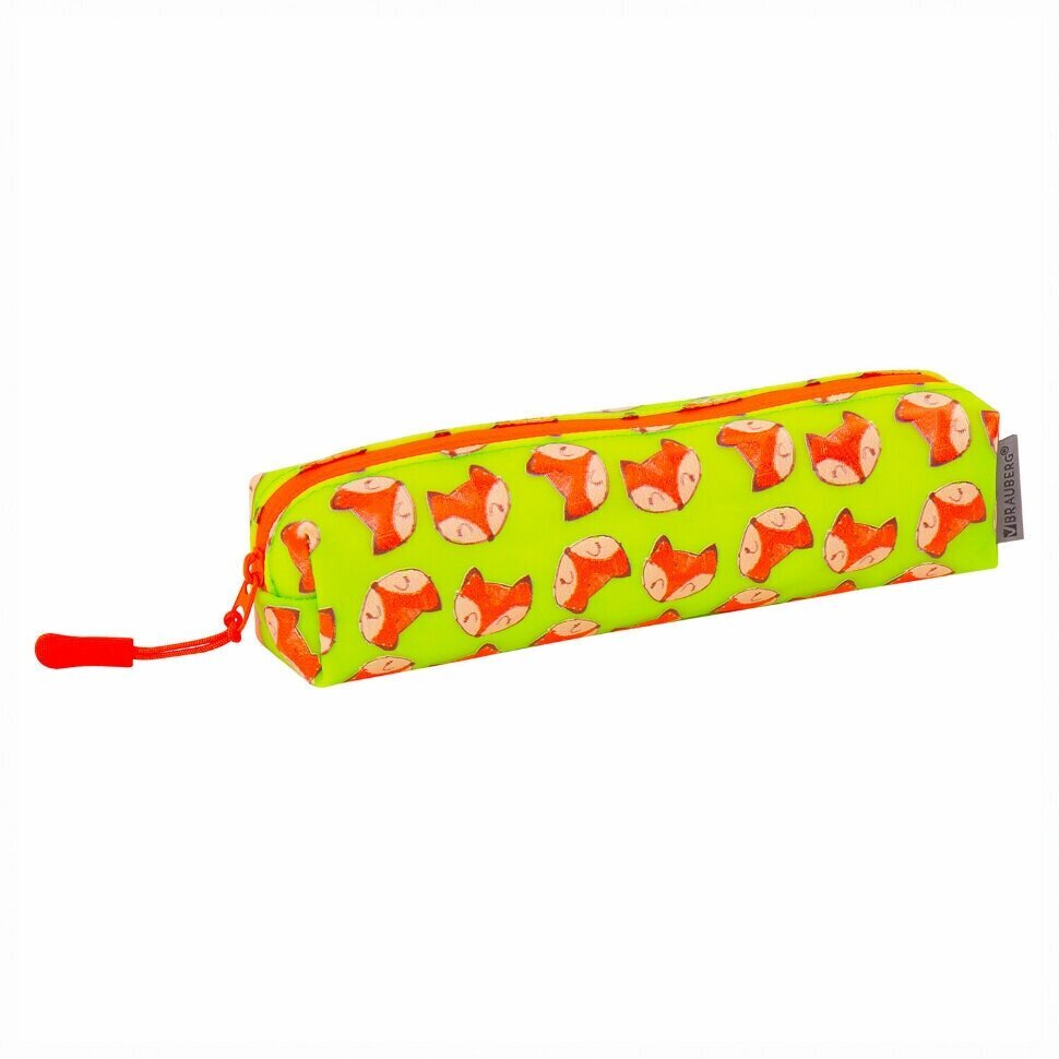 Пенал-косметичка BRAUBERG "Foxes" предназначен для хранения школьных принадлежностей, вмещает до 50 канцелярских предметов стандартного размера. Удобный и вместительный пенал не займет много места в школьном ранце или рюкзаке.Выполнен из мягкого силикона. Пенал прямоугольной формы с одним вместительным отделением застегивается на молнию с удобным пластиковым бегунком. Размер - 21х5х5 см. Поставляется в прозрачном полиэтиленовом пакете с европодвесом.