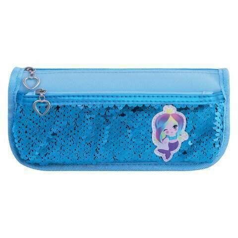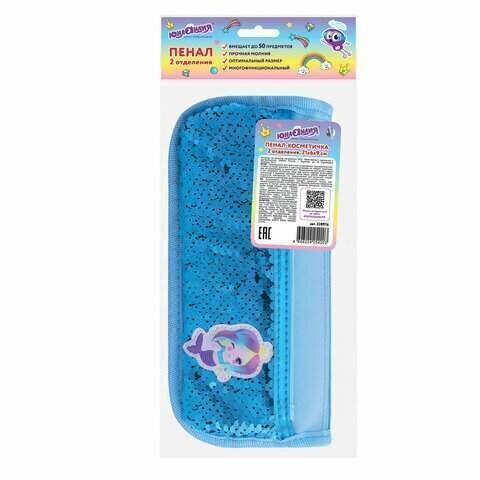 Пенал-косметичка ЮНЛАНДИЯ, 2 отделения, мягкий, пайетки, "Русалка", голубой, 21х6х9 см, 228976