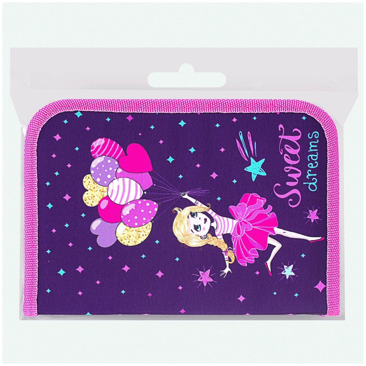 Тканевый пенал BRAUBERG "Sweet dream" стандартного размера с одним отделением и одной откидной планкой. Удобная молния с трех сторон с металлическим бегунком, прочные резинки для предметов. Пенал с наполнением включает 24 предмета.Материал снаружи и внутри - полиэстер с цветной печатью, ярким дизайном. Основа пенала - плотный картон. Такая конструкция отличается износостойкостью и прочностью, поможет защитить канцелярские принадлежности от повреждений.