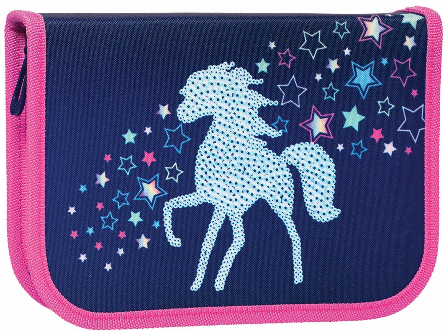 Благодаря откидной планке этот пенал ещё вместительнее, а все необходимые канцелярские принадлежности в нем уже есть. Пенал выполнен из износоустойчивого материала, свободно складывается и легко застегивается.Внутри 6 мягких трёхгранных цветных карандашей, трёхгранный чернографитный карандаш средней жёсткости и утолщённый трёхгранный карандаш с мягким грифелем, 6 ярких фломастеров, ластик, точилку, угольник, линейку на 16 см, запасной колпачок, три зажима для бумаг и расписание уроков. Пенал выполнен из износоустойчивого материала, легко застегивается.