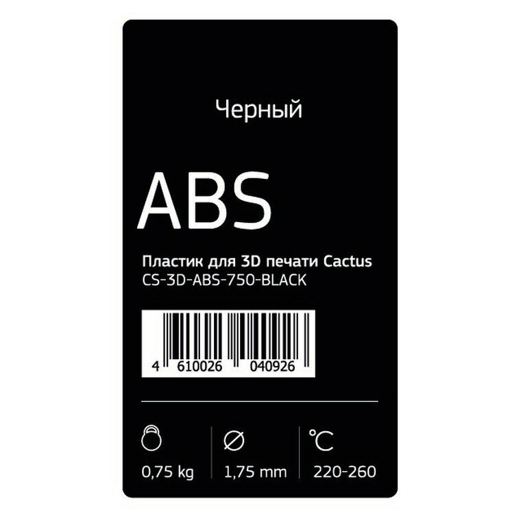 Бренд: CACTUS Назначение: для принтера 3D Тип: Пластик Модель: CS-3D-ABS-750-BLACK Материал пластика: ABS Диаметр пластика: 1.75мм Вес пластика: 0.75кг PartNumber/Артикул Производителя: CS-3D-ABS-750-BLACK Количество цветов в наборе: 1шт Цвет 1: черный Вес упаковки (ед): 0.738кг Группа детского товара (только для ситилинка): хобби и творчество Подгруппа детского товара (только для ситилинка): 3D печать Тип детского товара (только для ситилинка): 3D пластик