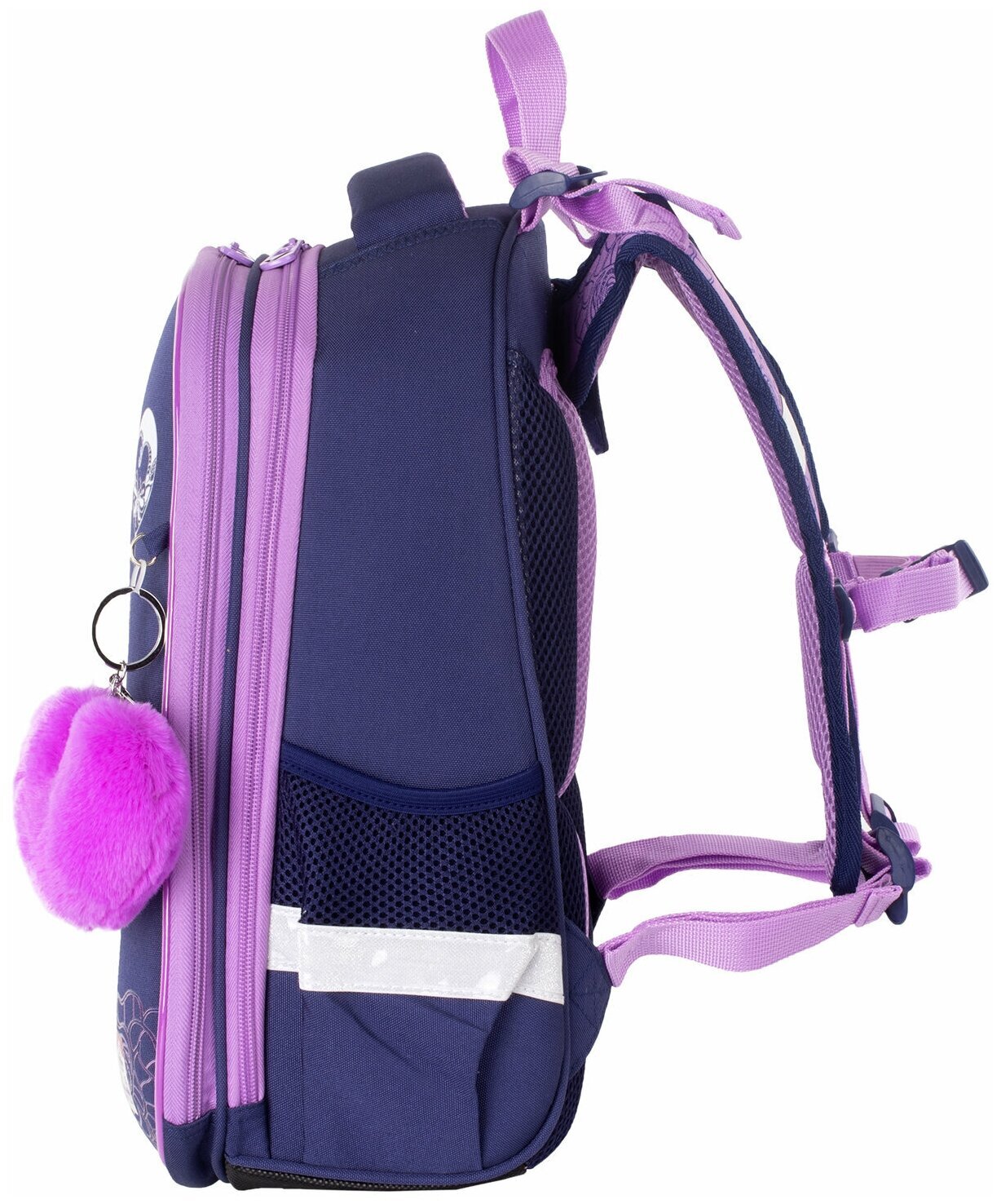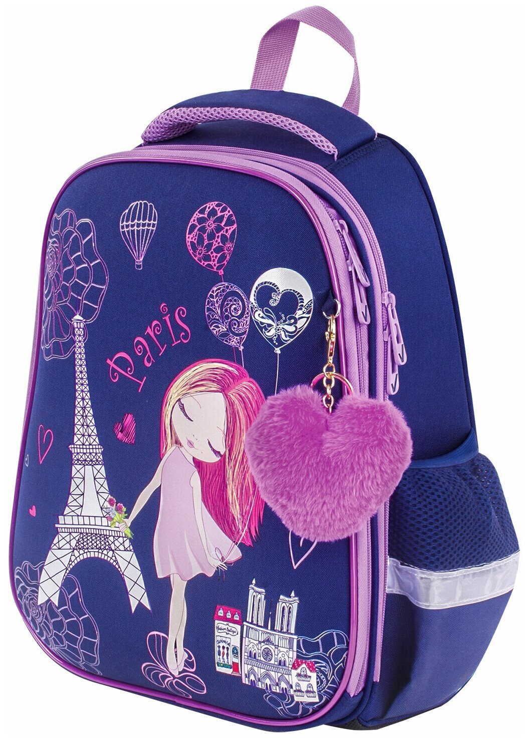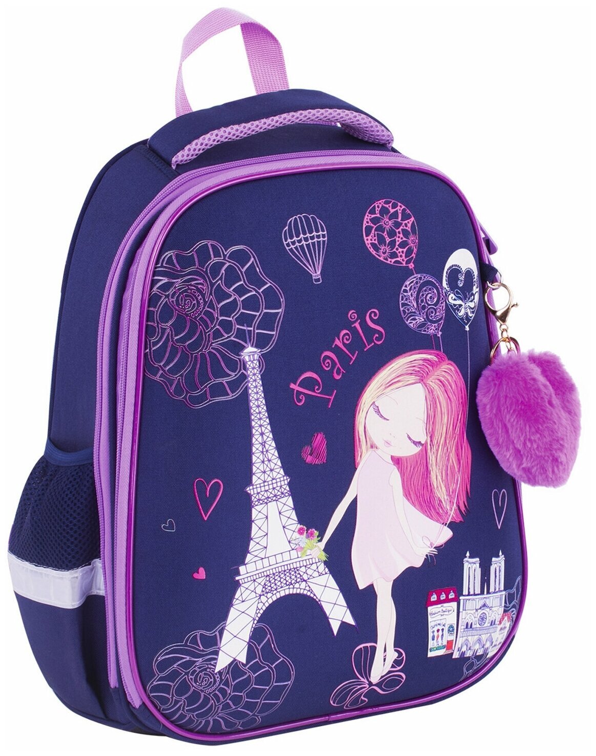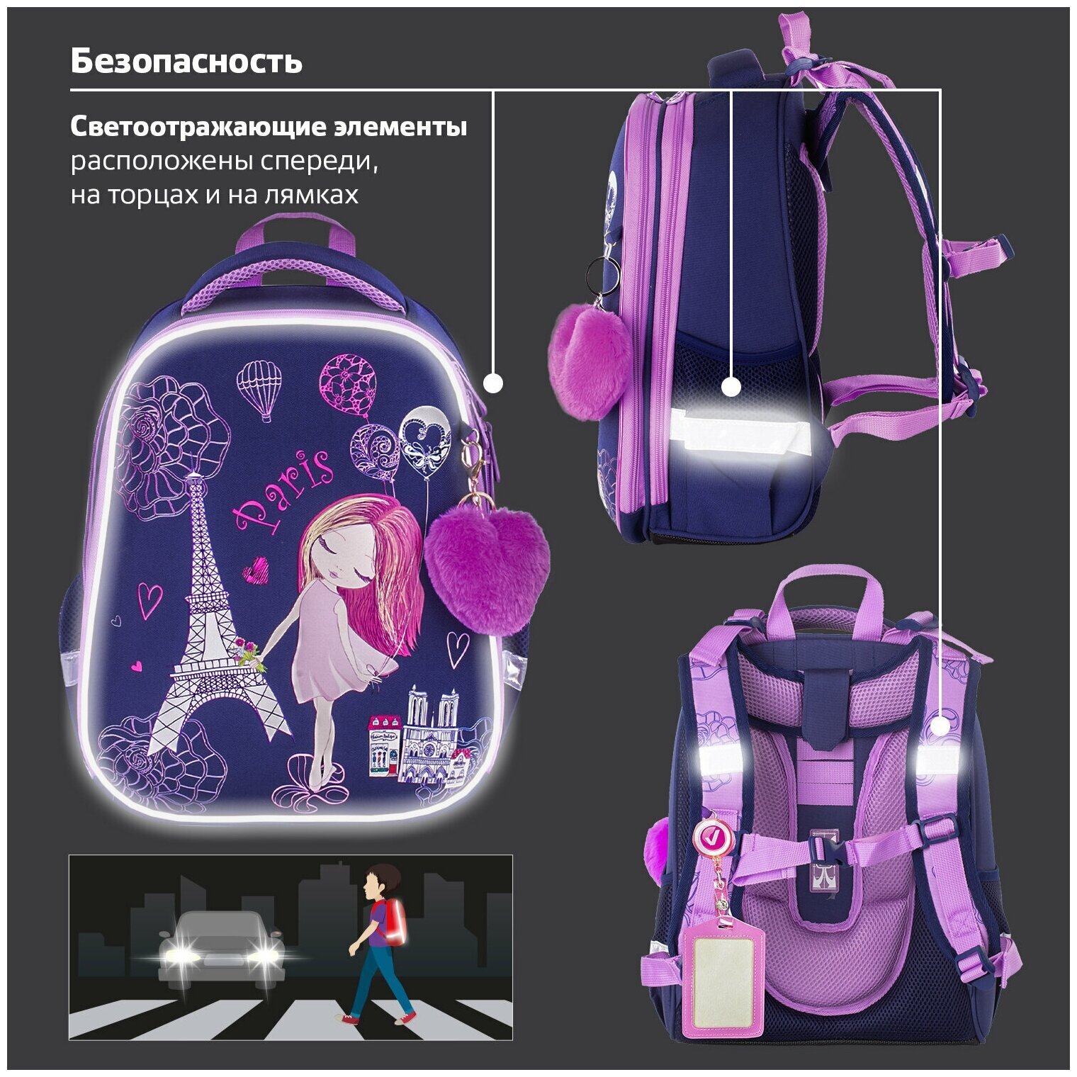 Ранец BRAUBERG серии PREMIUM самой популярной капсульной формы среди ранцев. Изготовлен из легкого, формоустойчивого, экологичного материала EVA с качественной и яркой печатью и различными эффектами. В комплекте с ранцем поставляется брелок-подвеска.Элегантный рисунок на передней панели смотрится очень стильно на тёмно-синем фоне. Декоративные элементы сиреневого цвета лаконично дополняют общую концепцию дизайна.