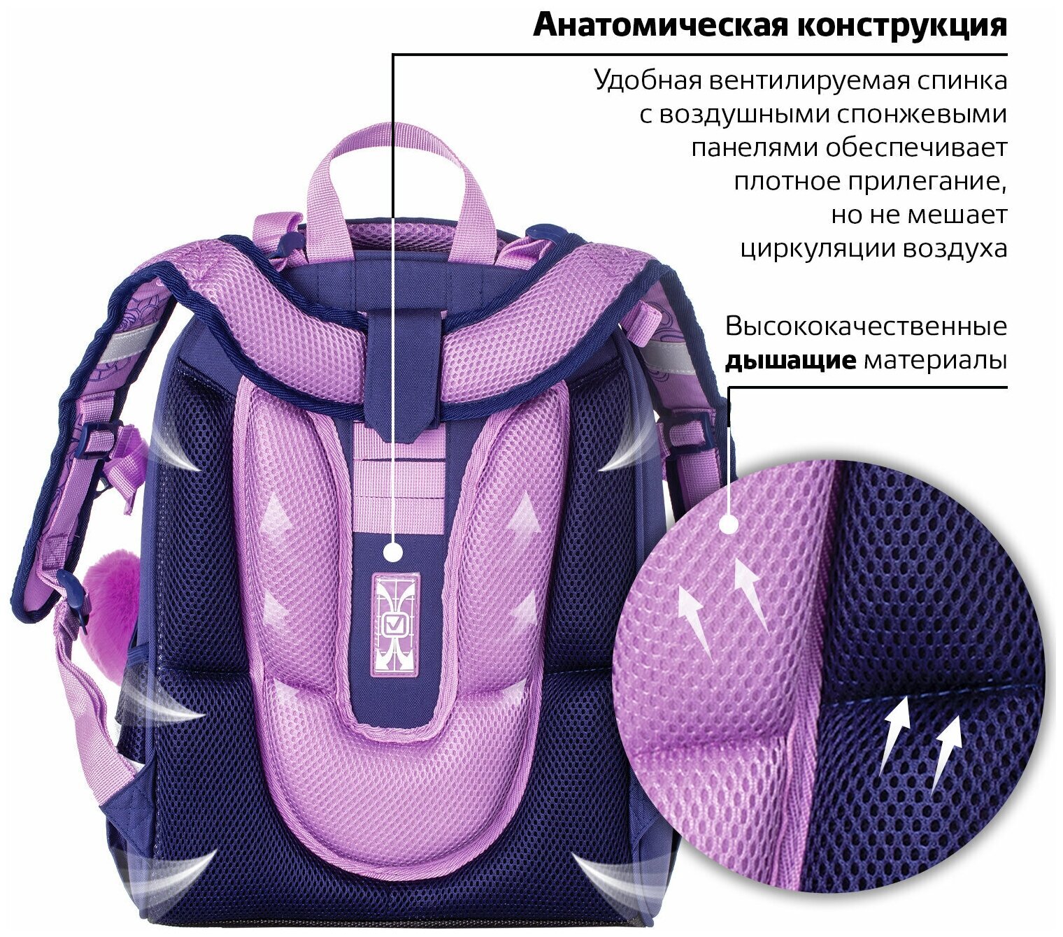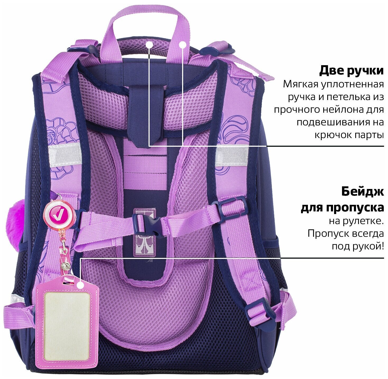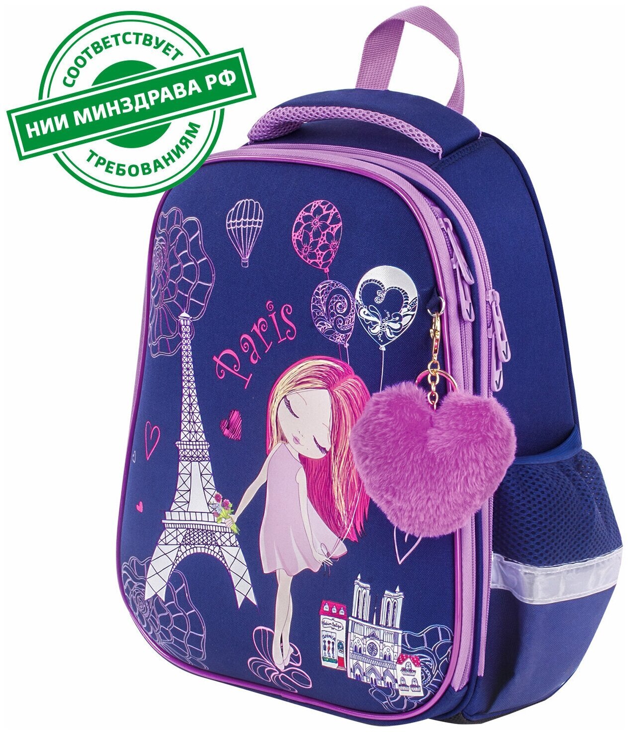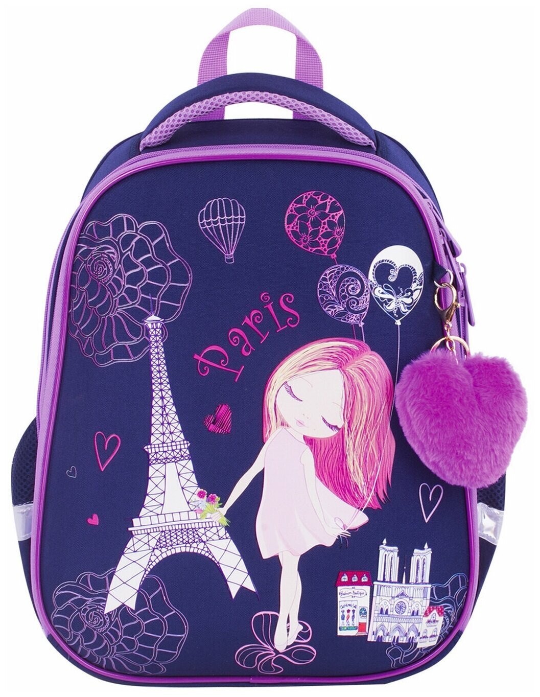 Ранец BRAUBERG серии PREMIUM самой популярной капсульной формы среди ранцев. Изготовлен из легкого, формоустойчивого, экологичного материала EVA с качественной и яркой печатью и различными эффектами. В комплекте с ранцем поставляется брелок-подвеска.Элегантный рисунок на передней панели смотрится очень стильно на тёмно-синем фоне. Декоративные элементы сиреневого цвета лаконично дополняют общую концепцию дизайна.