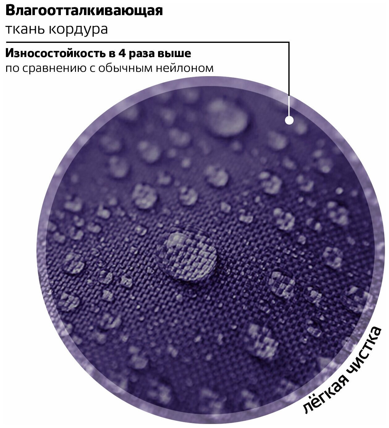 Ранец покрыт высококачественной влагоотталкивающей нейлоновой тканью - кордура, в которой за счёт особой структуры нити достигнута четырёхкратная стойкость к истиранию по сравнению с простым нейлоном, также эта ткань легко чистится.
