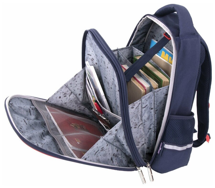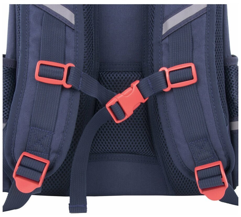 Регулируемые по длине S-образные лямки, можно оптимально подогнать под комплекцию ребенка, чтобы ранец носился с комфортом, несмотря на зачастую избыточный вес содержимого: учебников, тетрадей, канцтоваров. Регулируемый в двух направлениях нагрудный ремешок с фиксатором-защелкой поможет правильно распределить нагрузку. При правильной регулировке ранец будет практически не ощущаться на плечах и не будет доставлять дискомфорт при носке.