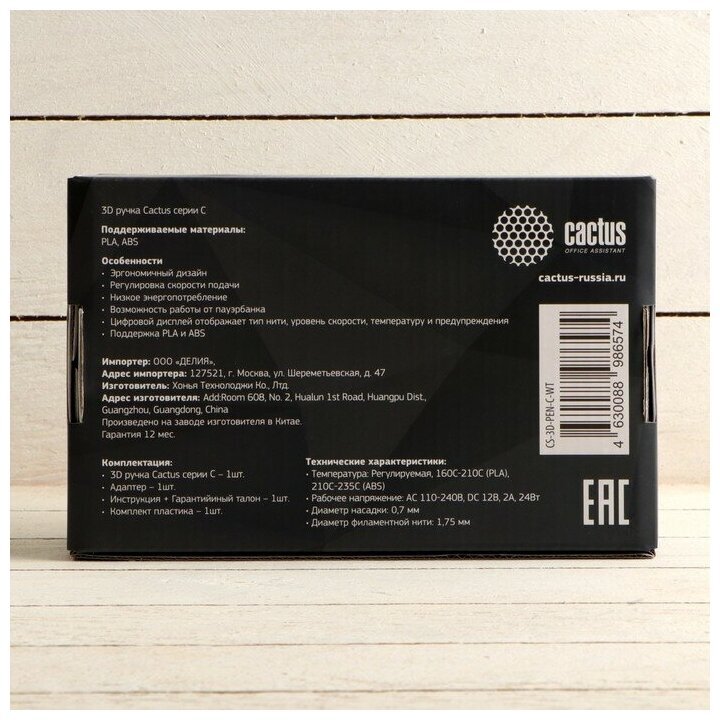 3D ручка Cactus может стать отличным подарком для ребенка и прекрасным инструментом для творческого человека. Она позволяет рисовать PLA и ABS-пластиком объемные и плоские фигуры, имеет удобную эргономичную форму корпуса и снабжена LCD-дисплеем. Есть возможность регулировки скорости подачи нити и рабочей температуры 180-230°C.
