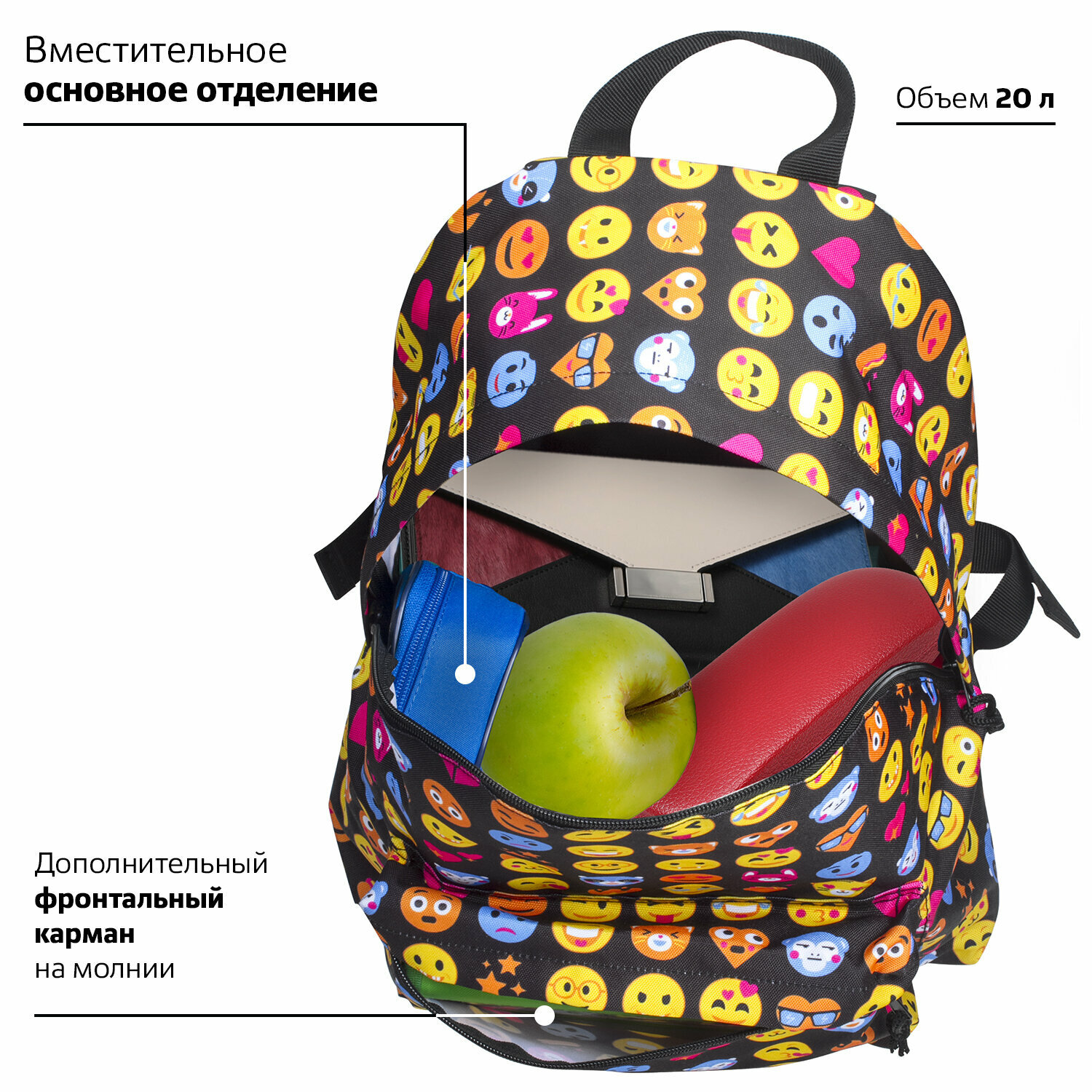 Рюкзак классической конфигурации BRAUBERG "Смайлики" - основное большое отделение и передний карман на молнии. Надежные материалы, качественная фурнитура, удобные плечевые лямки, большое разнообразие дизайнов, все это - рюкзак сити-формата!Классический рюкзак самой популярной формы станет незаменимым спутником активной молодежи, которая ценит практичность. Плотная ткань рюкзака обеспечит сохранность содержимого, а вместительное отделение позволит иметь при себе все необходимое.