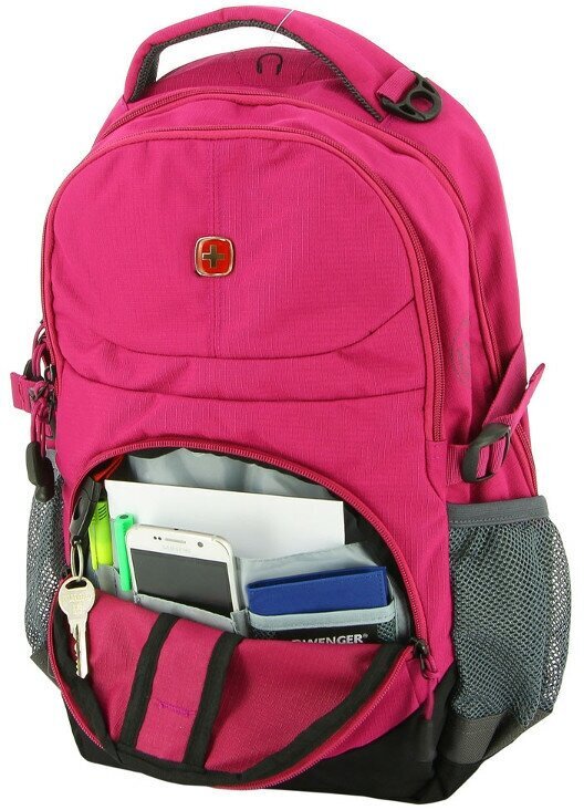 Карман-органайзер и кольцо для ключей позволят упорядоченно хранить большое количество мелких вещей. Два боковых кармана из эластичной сетки используются для хранения бутылок с водой.