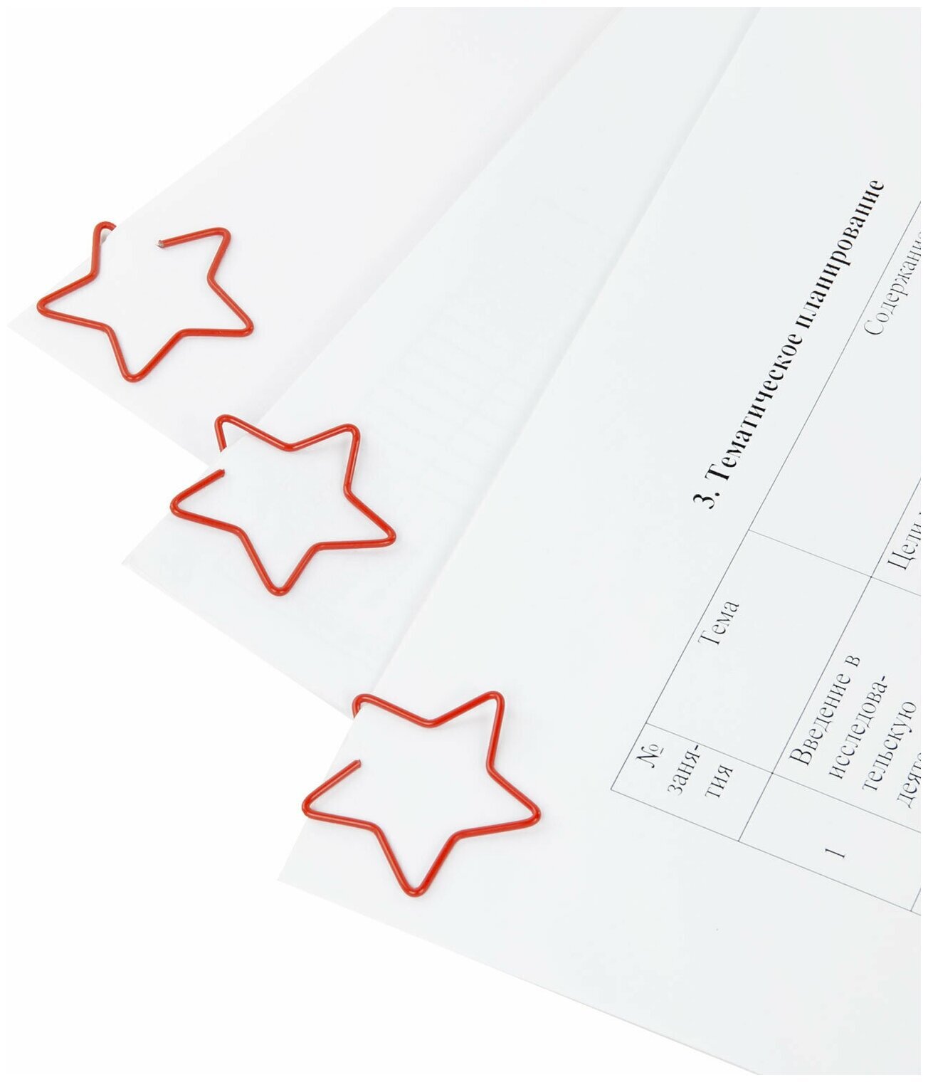 Скрепки STAFF - это незаменимые помощники для временного скрепления небольшого объема документов.Скрепки в форме звезд изготовлены из стали и имеют красное пластиковое покрытие. Длина скрепки составляет 32 мм. Не окисляются и не повреждают документы. 20 штук в картонной коробке.