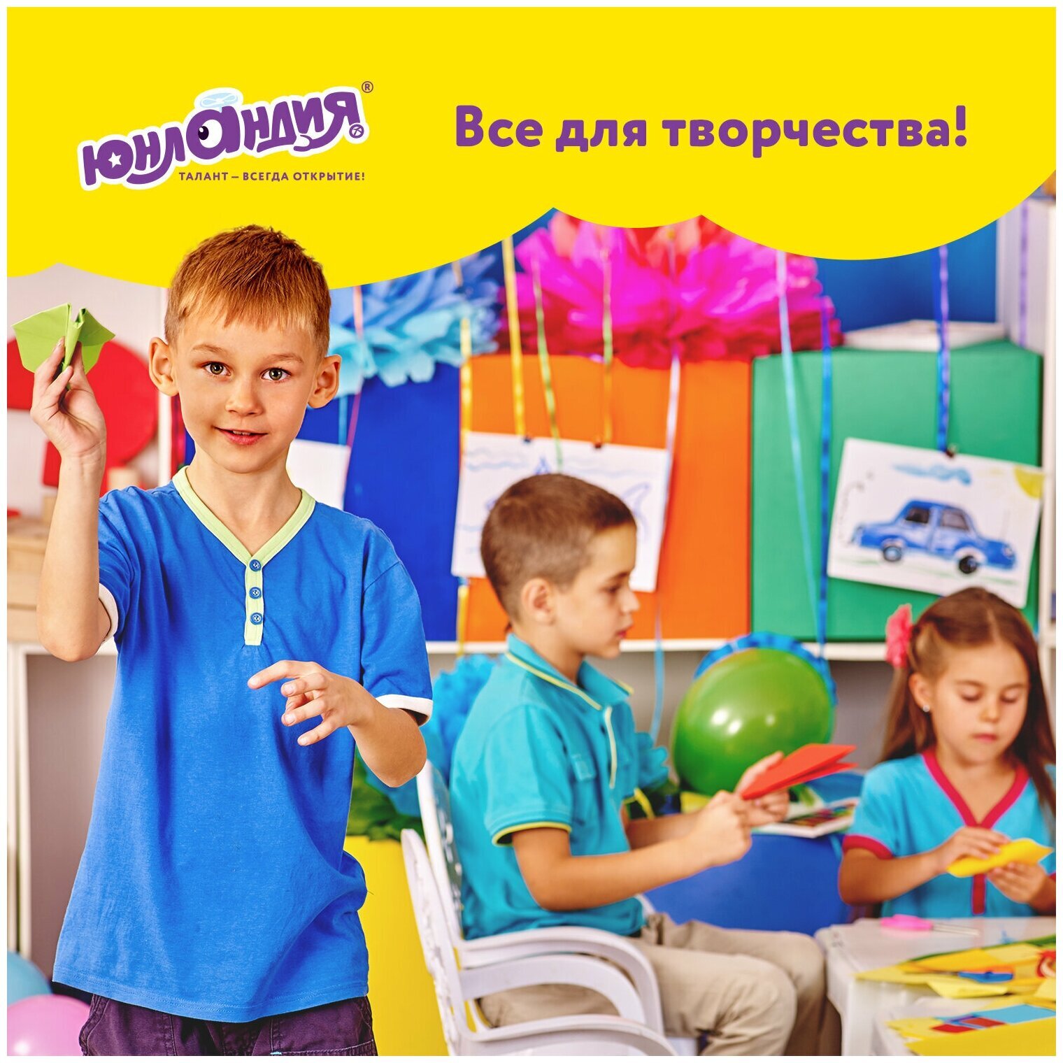 Набор цветной бумаги ЮНЛАНДИЯ предназначен для творчества и хобби и может использоваться детьми с трехлетнего возраста. Бумага рекомендована для уроков труда и технологии. Помогает развивать моторику, фантазию и пространственное мышление ребенка.Данная бумага имеет клейкий слой на обратной стороне. Для работы с ней не требуется клей, она не пачкает руки, легко режется. Поделка или аппликация с использованием самоклеящейся бумаги ЮНЛАНДИЯ всегда будет выглядеть эстетично и аккуратно.