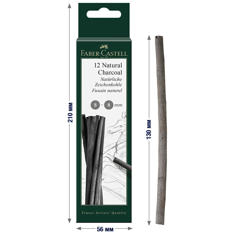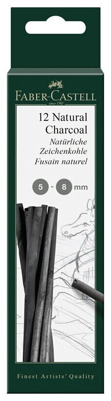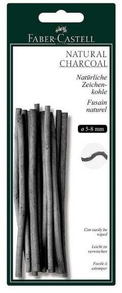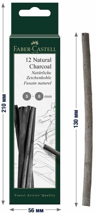 Набор натурального угля идеально подходит для зарисовок и набросков. Уголь изготовлен из буковых или вербных веточек. Иссиня-черный цвет. Удобный круглый корпус. В наборе 12 штук различного диаметра: 5-8 мм.