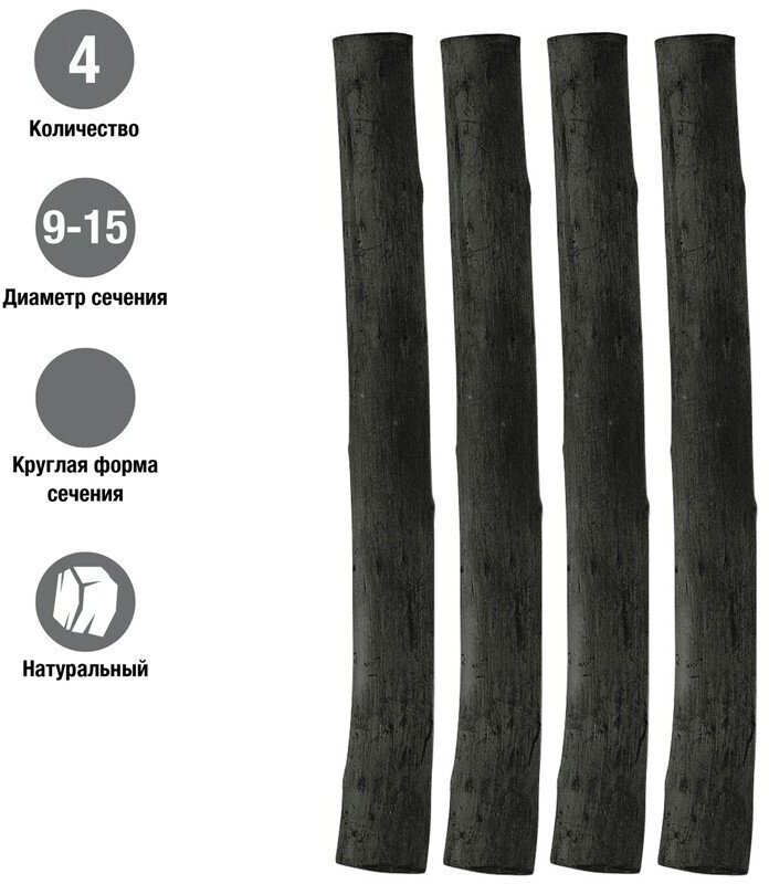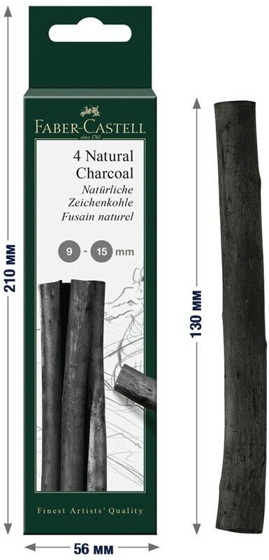 Уголь изготовлен из буковых или вербных веточек. Имеет равномерный черный цвет с синеватым оттенком, хорошо затирается и смазывается. Может быть очищен, не оставляя следа, с поверхности бумаги без особых усилий.