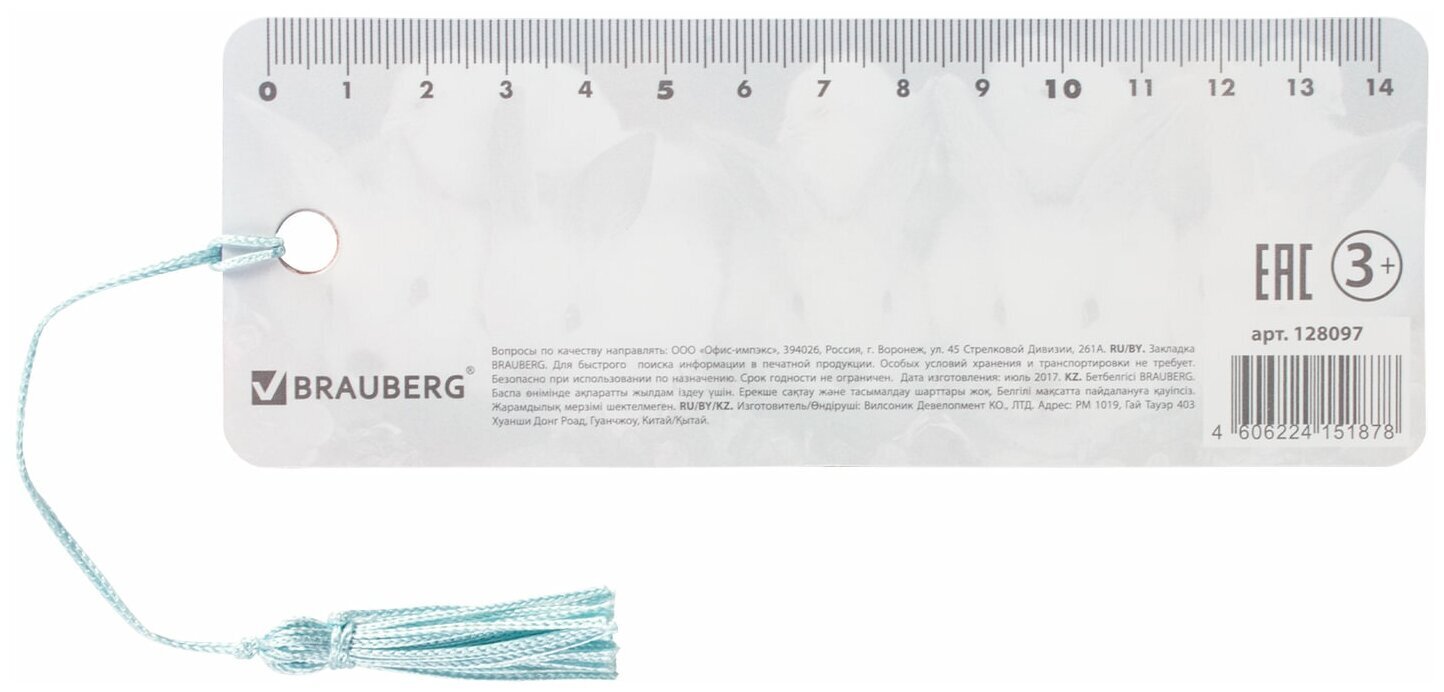 Оригинальная и практичная закладка BRAUBERG с объемным изображением милых кроликов и цыплят незаменима для всех, кто любит читать. Подойдет также для ведения ежедневников.Изготовлена из пластика с применением технологии высококачественной 3D-печати, а удобный декоративный шнурок-завязка позволяет быстро найти нужную страницу. Имеется сантиметровая шкала на обратной стороне закладки. Размер - 152х57 мм.