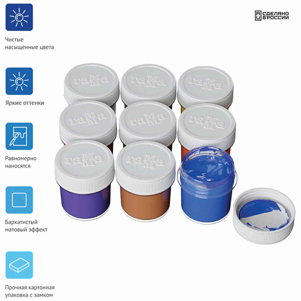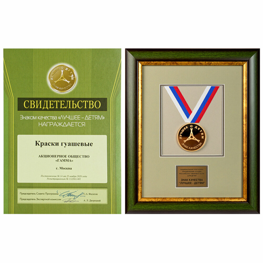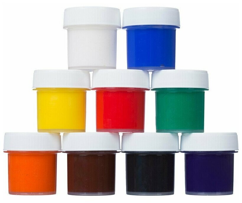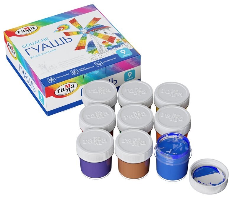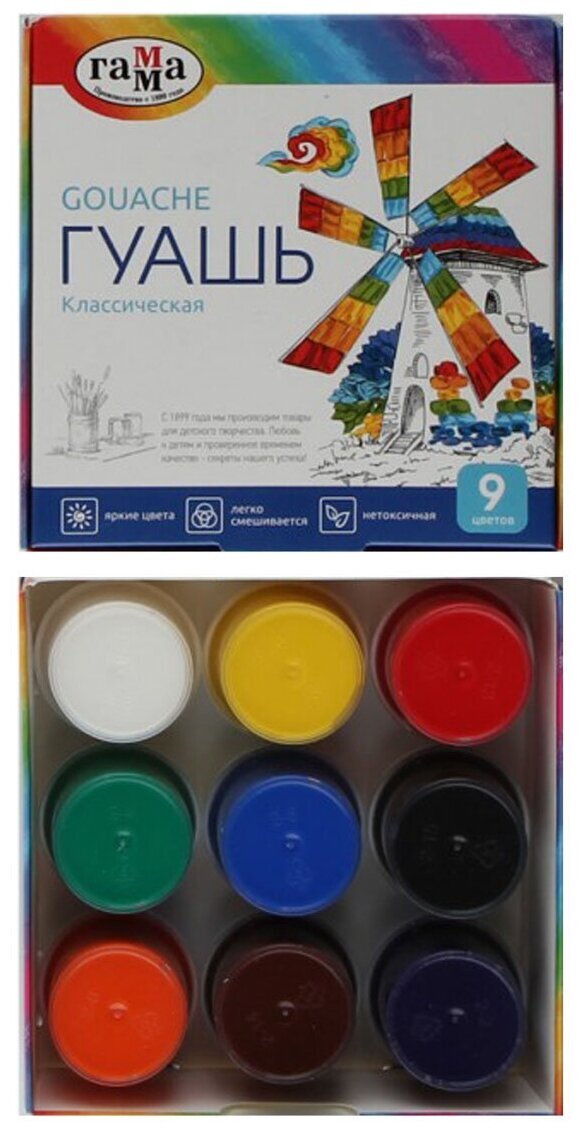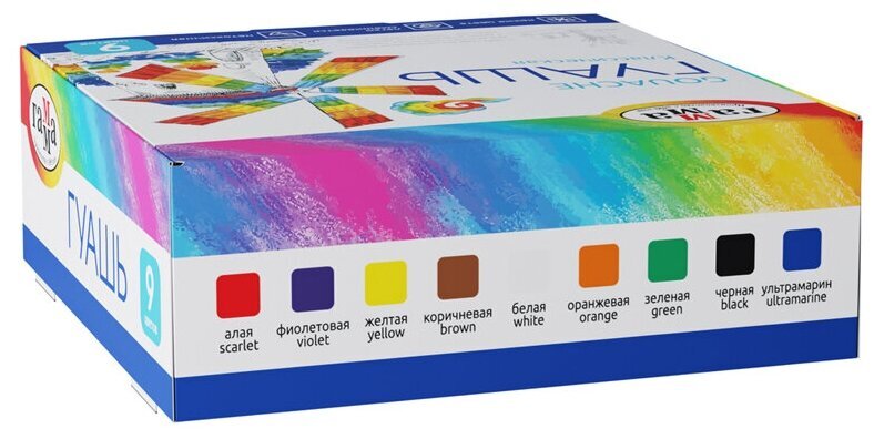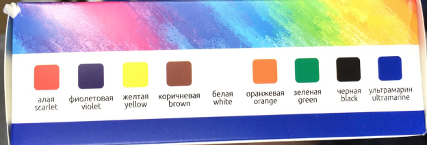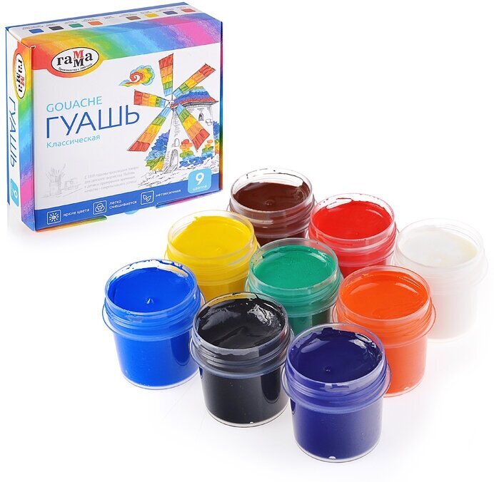 Для изготовления гуашевых красок используются натуральные высококачественные пигменты, повышающие светостойкость и насыщенность краски. Краски хорошо ложатся на бумагу и обладают высокой укрывистостью.