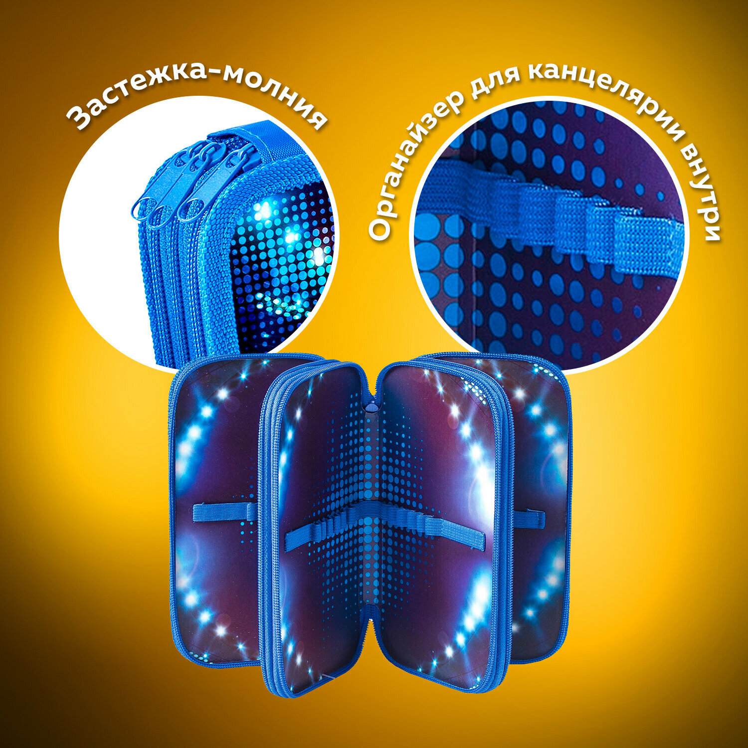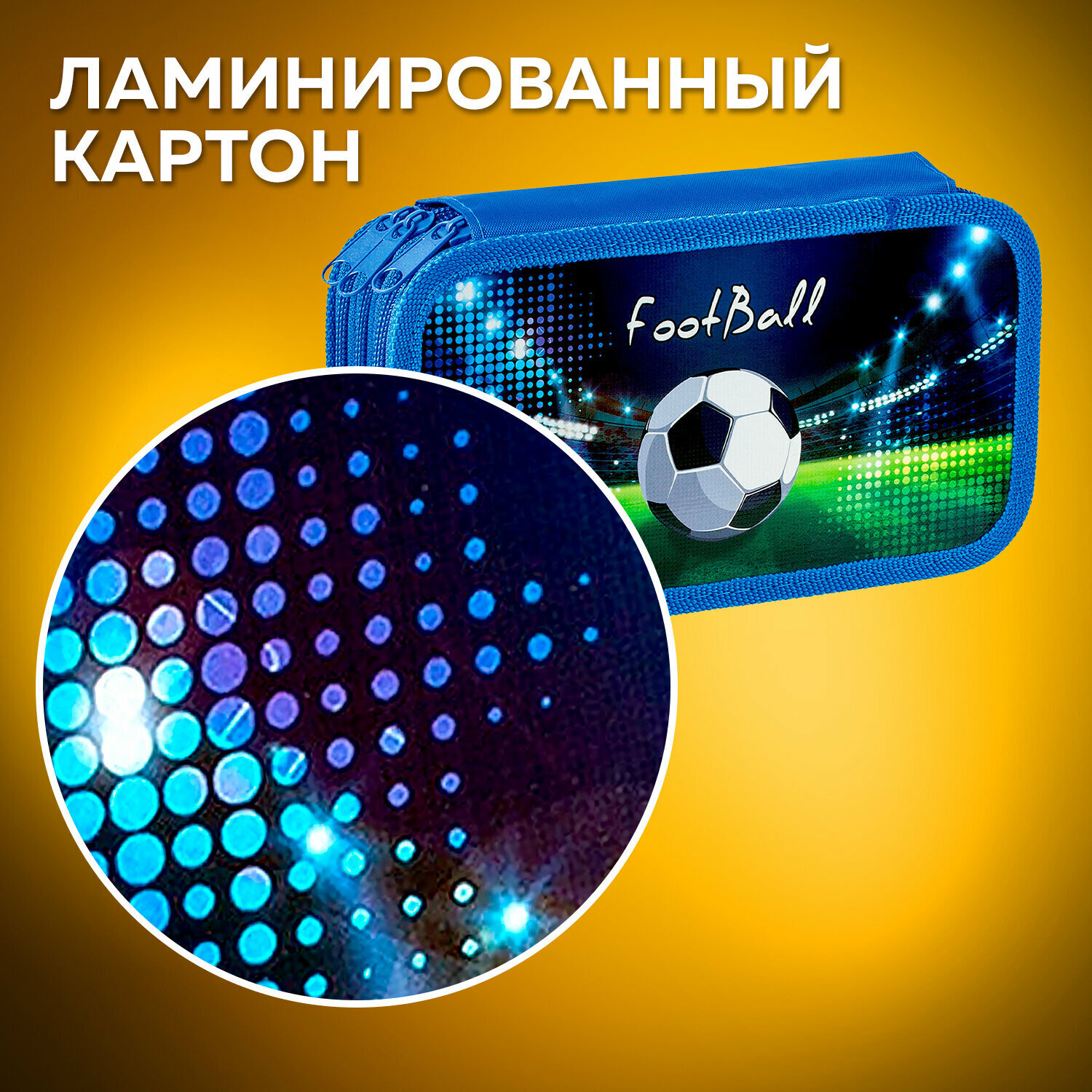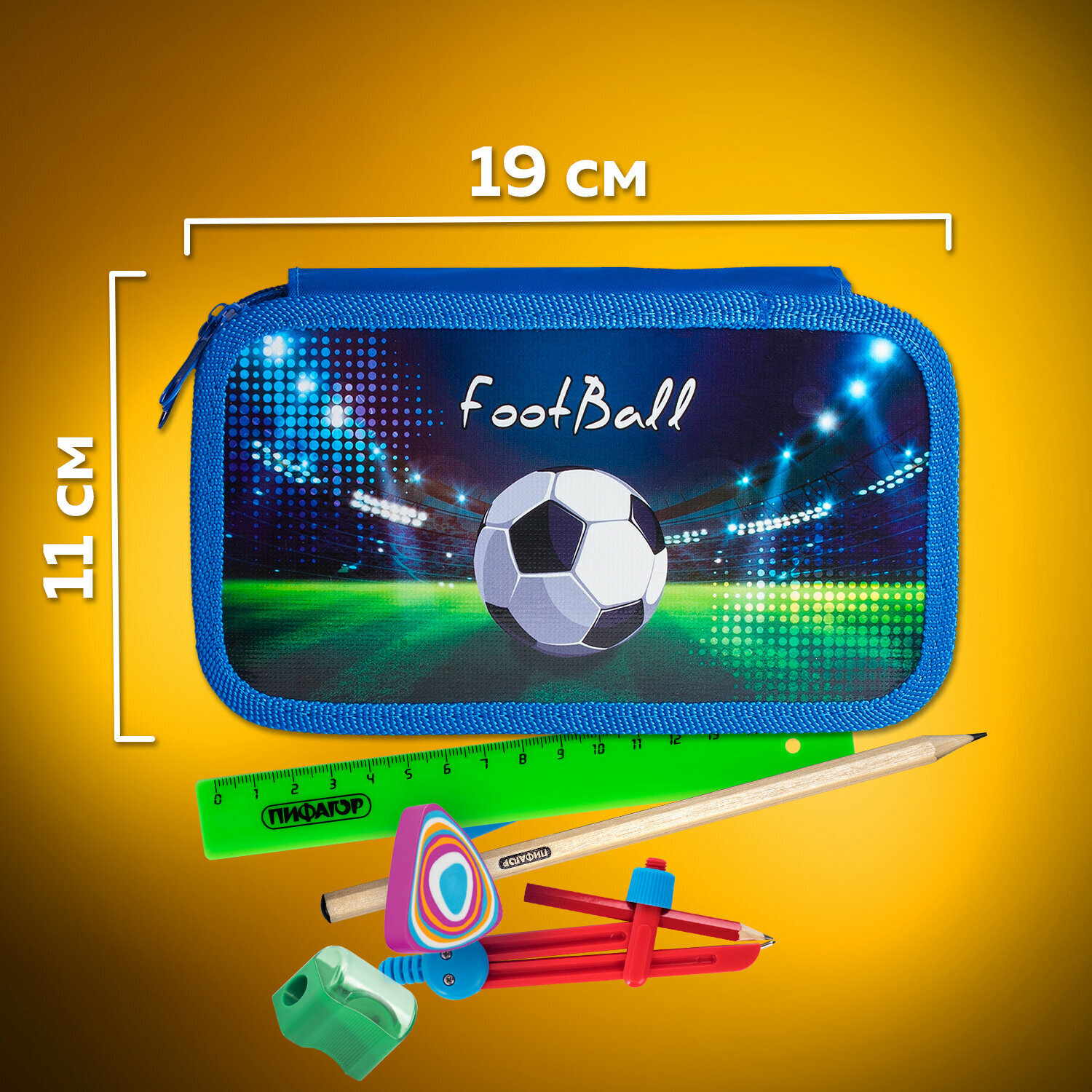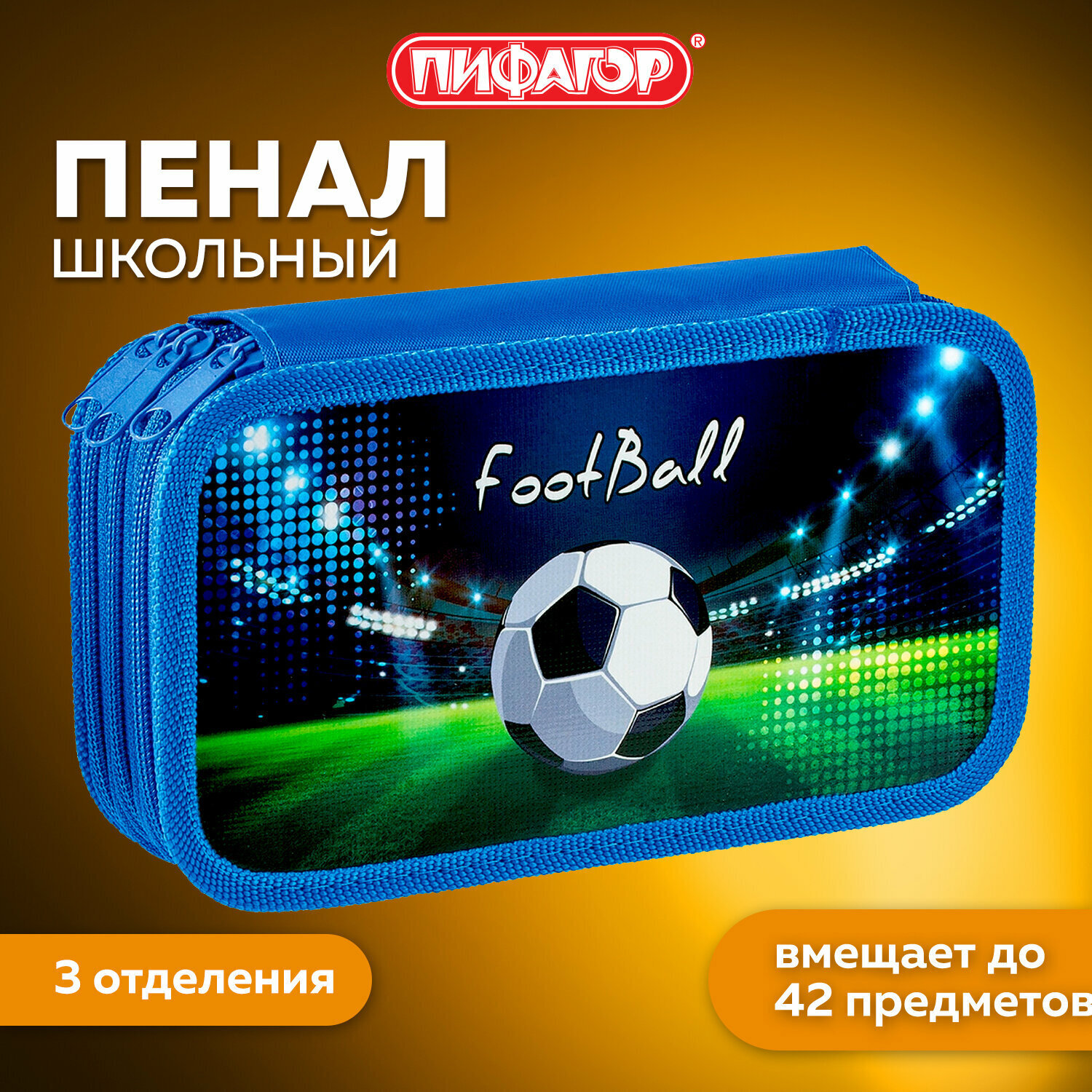 Пенал ПИФАГОР "Stadium" с тремя отделениями, выполнен из ламинированного картона, тканевый торец. Яркий дизайн. Удобные молнии с трех сторон с металлическим бегунком, прочные резинки для предметов. Вмещает до 42 предметов.Материал пенала - ламинированный картон с цветной печатью, ярким дизайном. Основа пенала - плотный картон, обшитый тканью по краям, с тканевым торцом. Такая конструкция отличается износостойкостью и прочностью, поможет защитить канцелярские принадлежности от повреждений.