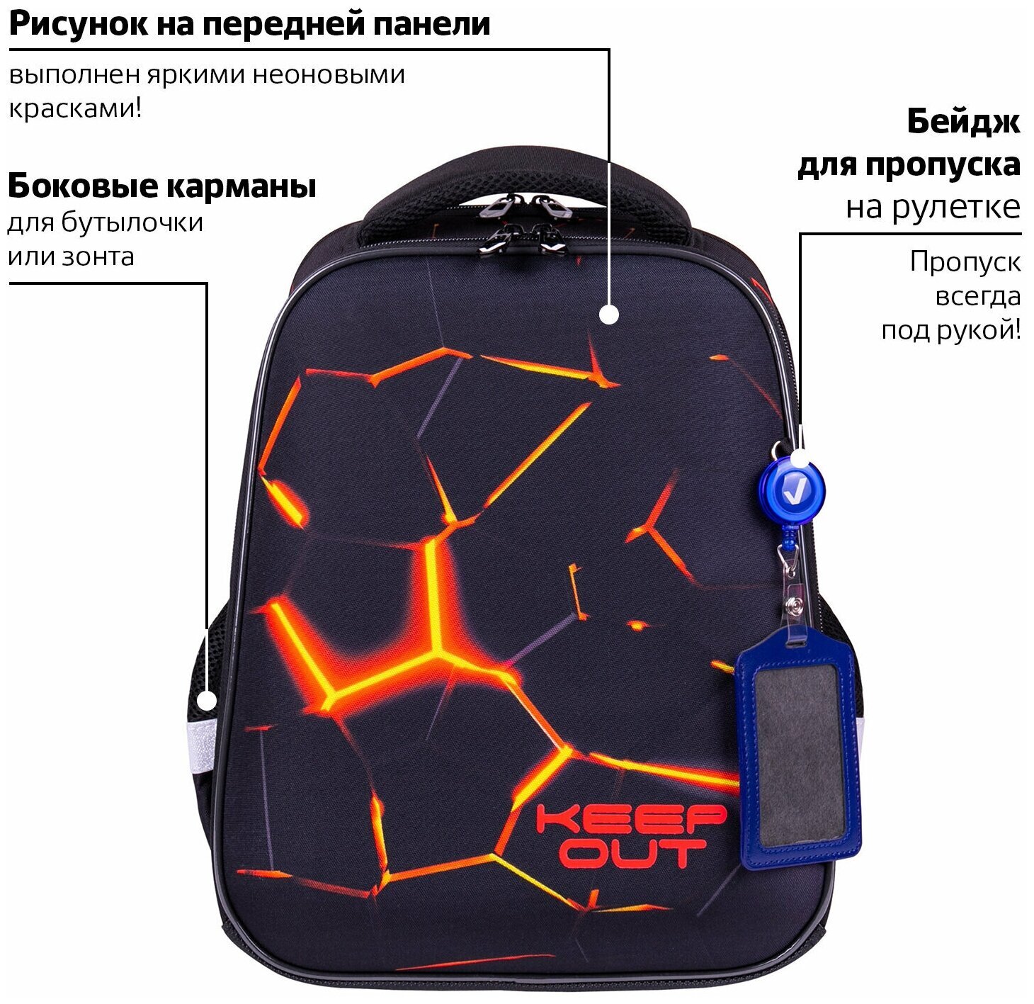 Рисунок на передней панели ранца выполнен яркими неоновыми красками!