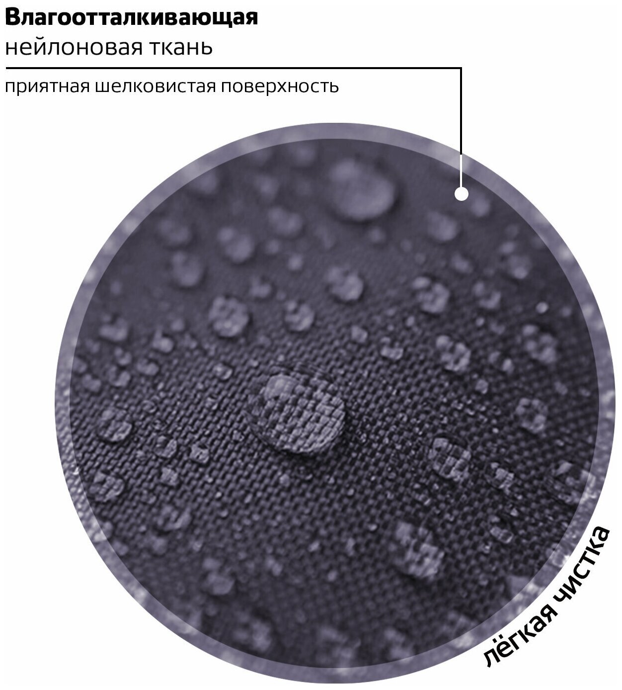 Ранец покрыт высококачественной влагоотталкивающей нейлоновой тканью с приятной шелковистой поверхностью. Ткань легко чистится.