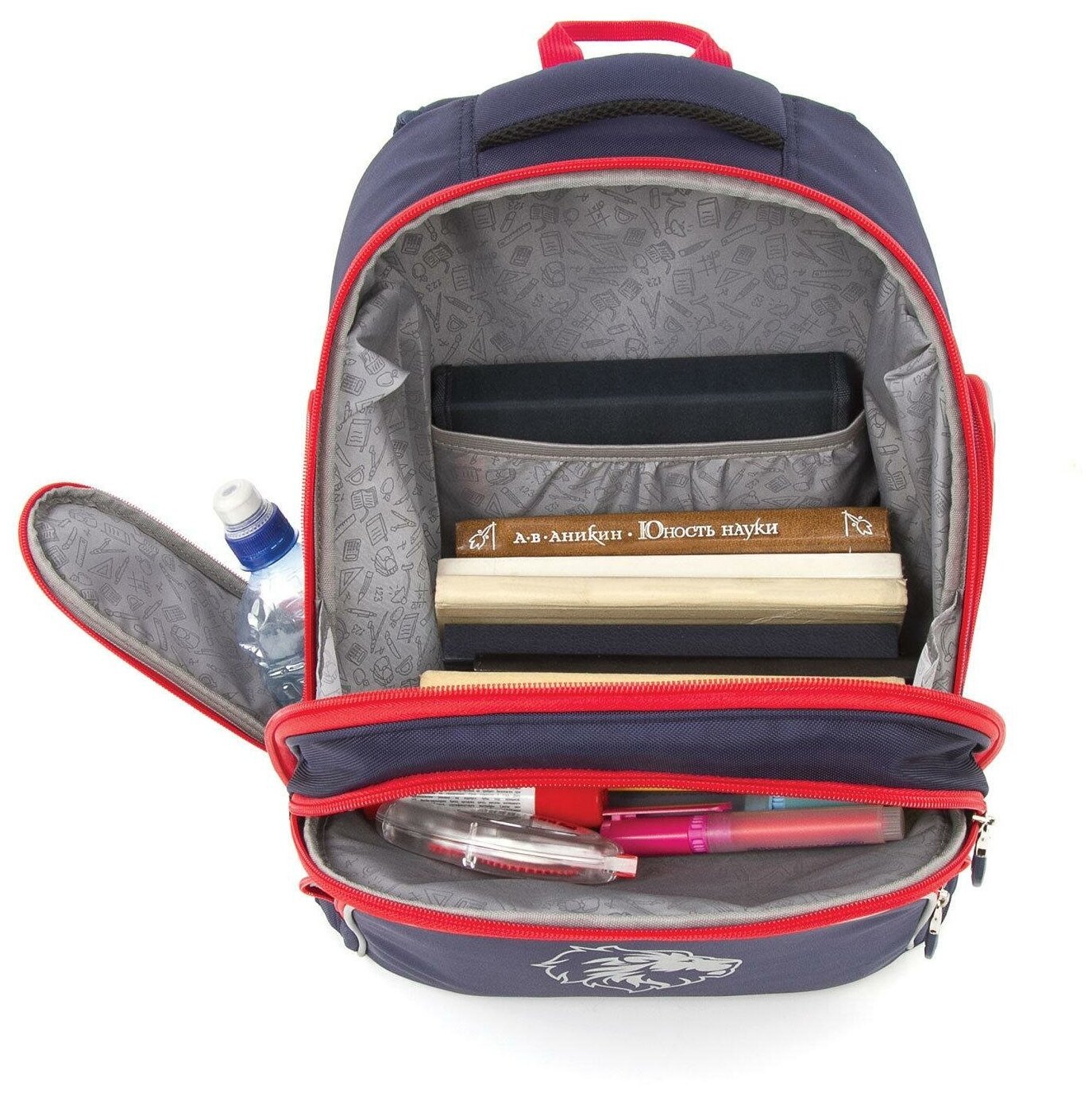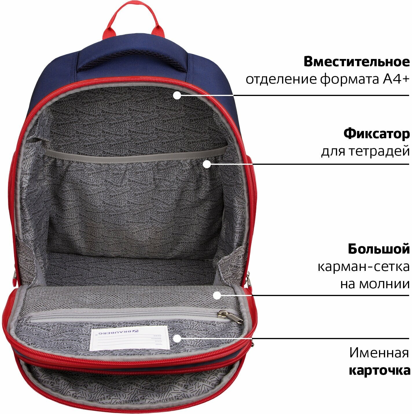 В основном отделении рюкзака можно легко и быстро разместить учебники и тетради формата А4+, а также воспользоваться прижимным отделением