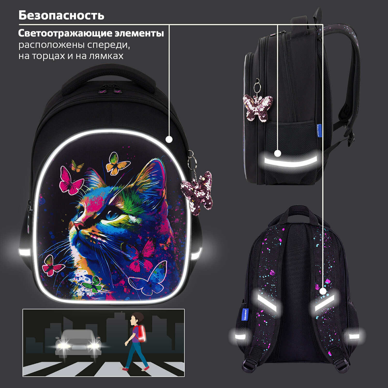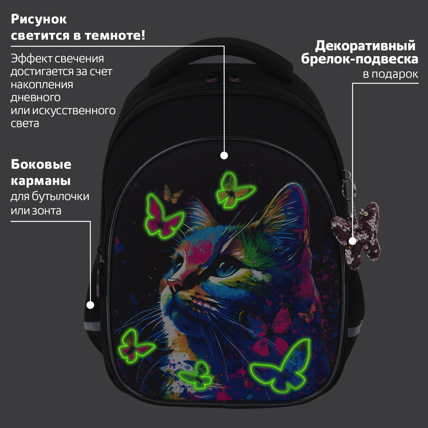 Элементы дизайна рюкзака светятся в темноте! Светящийся дизайн реализован с помощью современной и технологичной печати на ткани специальной краской. Эффект свечения достигается за счёт накопления дневного или искусственного света.