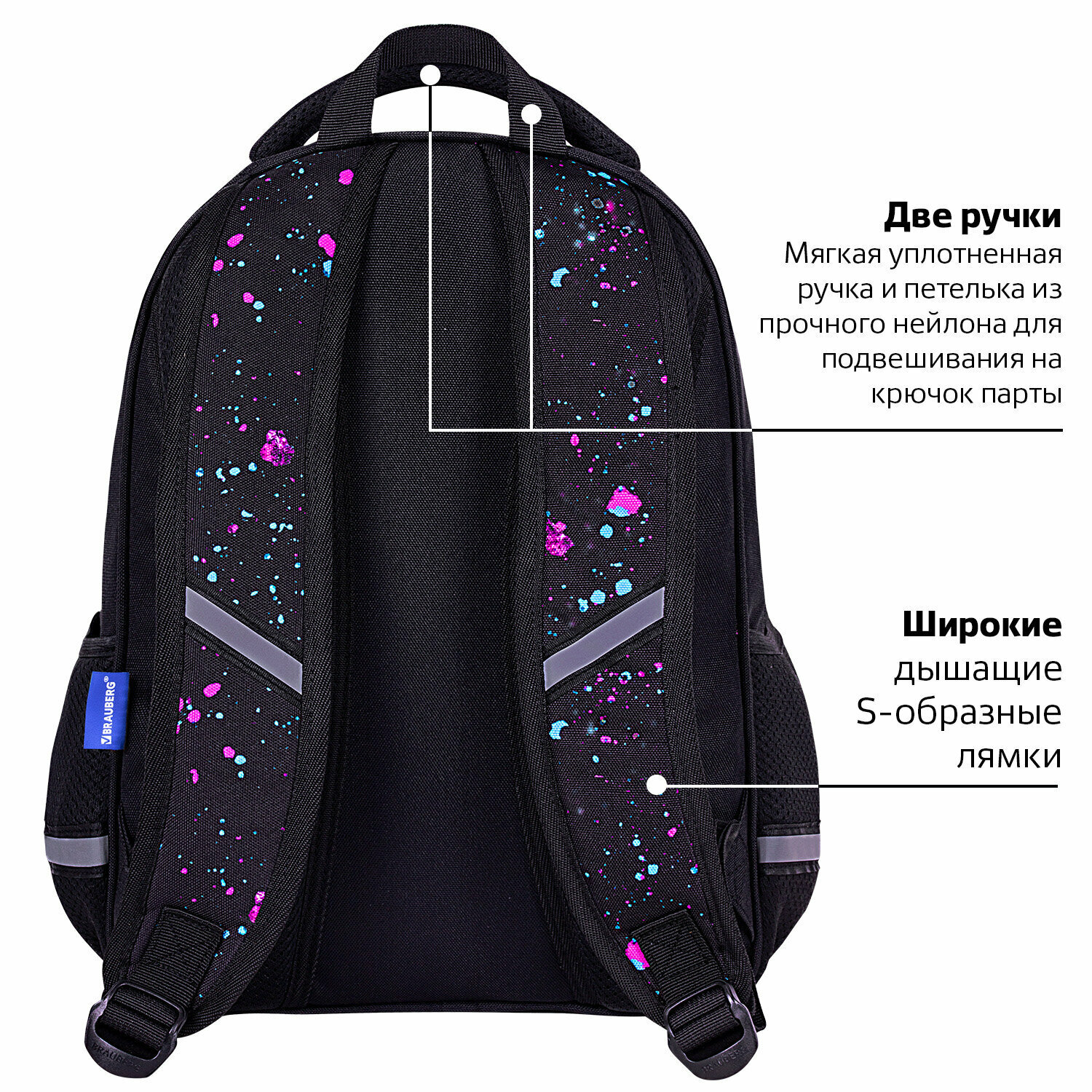 Широкие дышащие лямки имеют S-образную форму, позволяя носить рюкзак с комфортом.