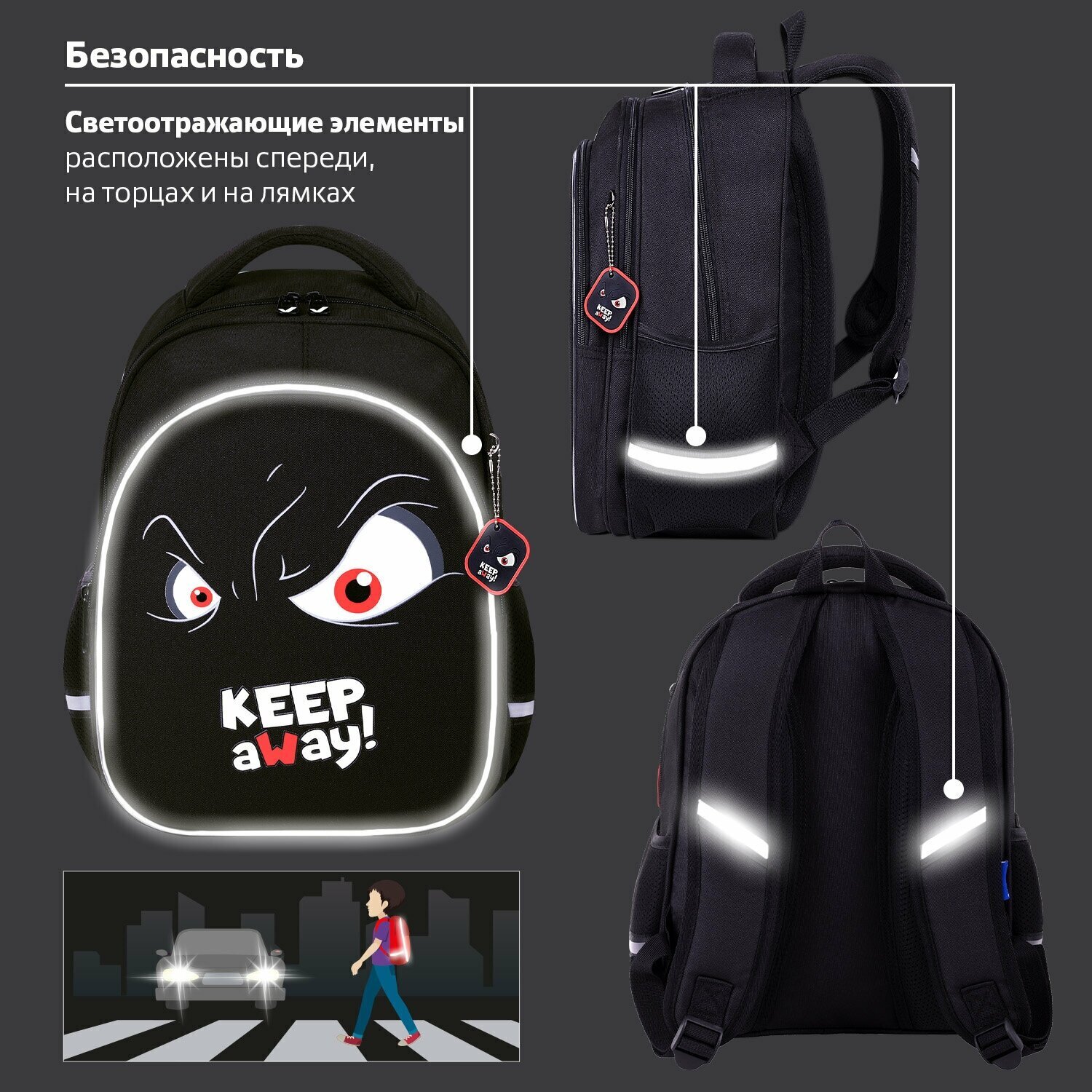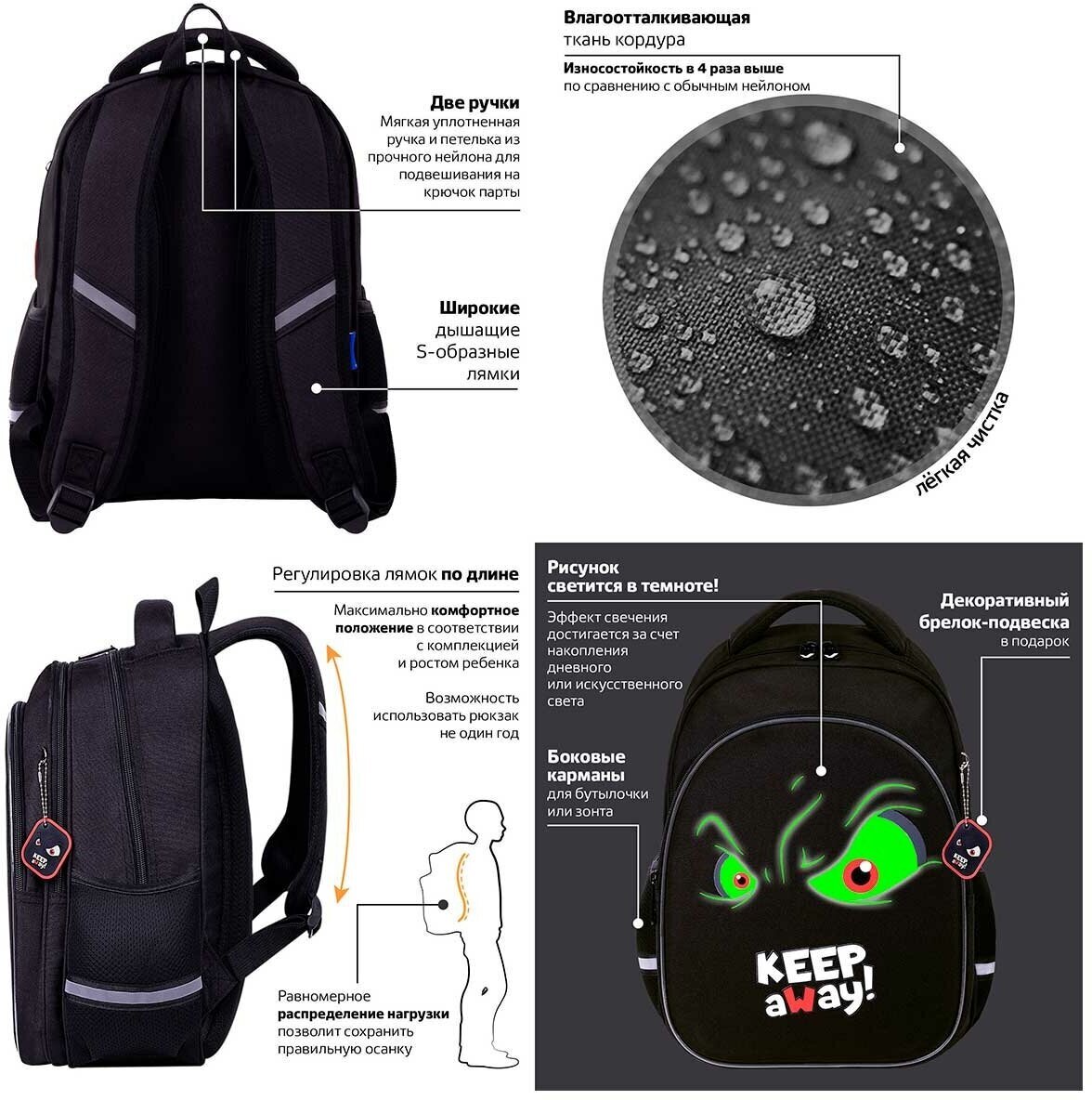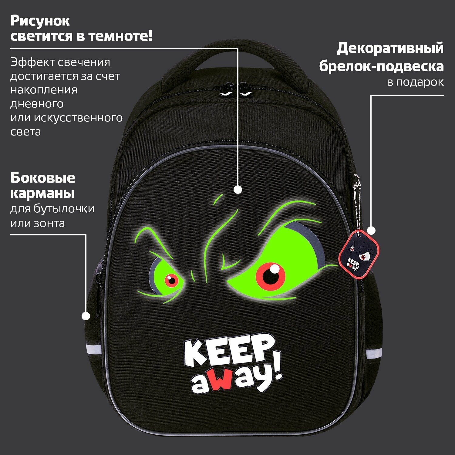 Элементы дизайна рюкзака светятся в темноте! Светящийся дизайн реализован с помощью современной и технологичной печати на ткани специальной краской. Эффект свечения достигается за счёт накопления дневного или искусственного света.