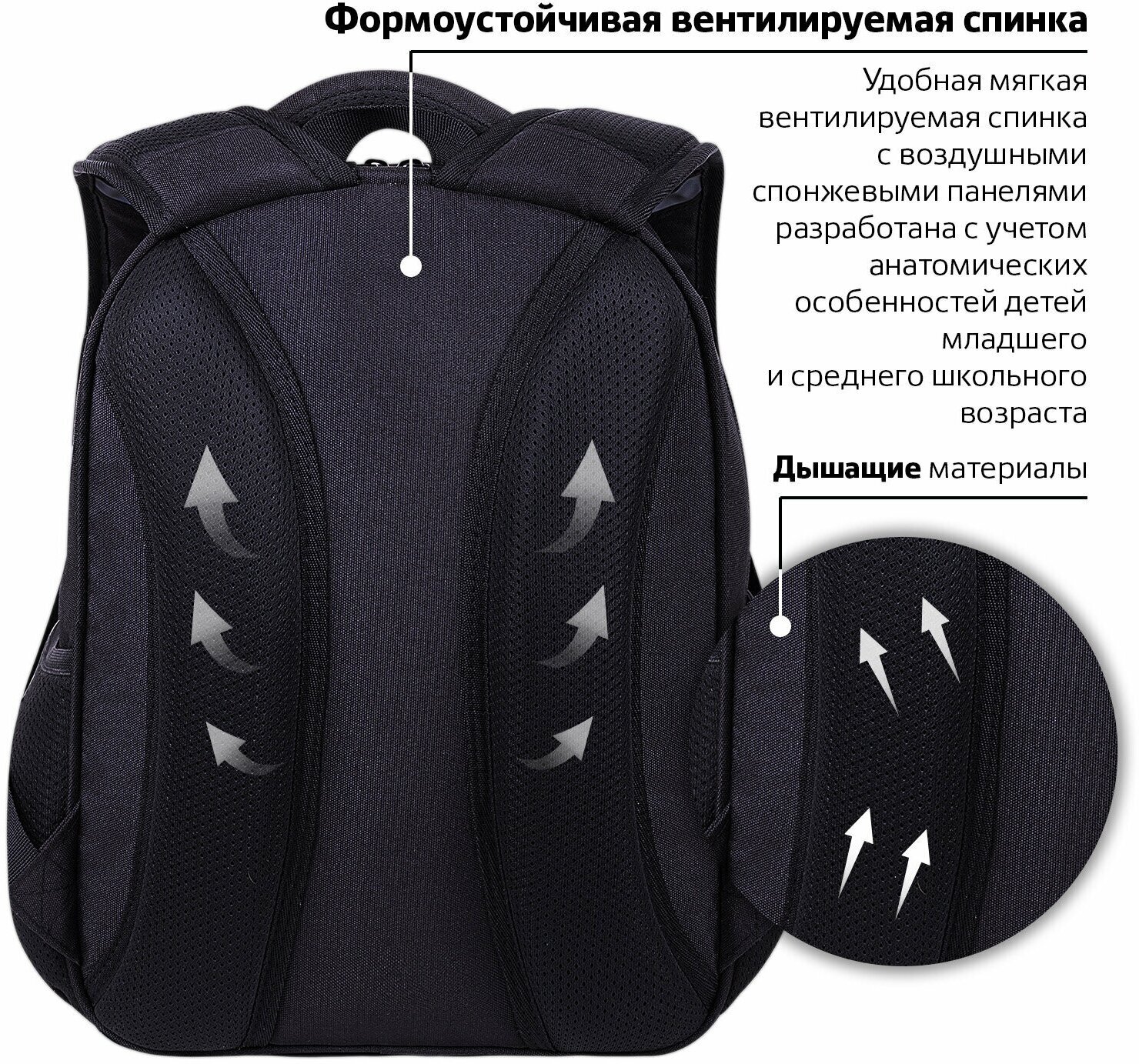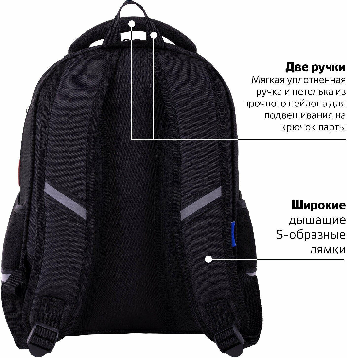 Широкие дышащие лямки имеют S-образную форму, позволяя носить рюкзак с комфортом.