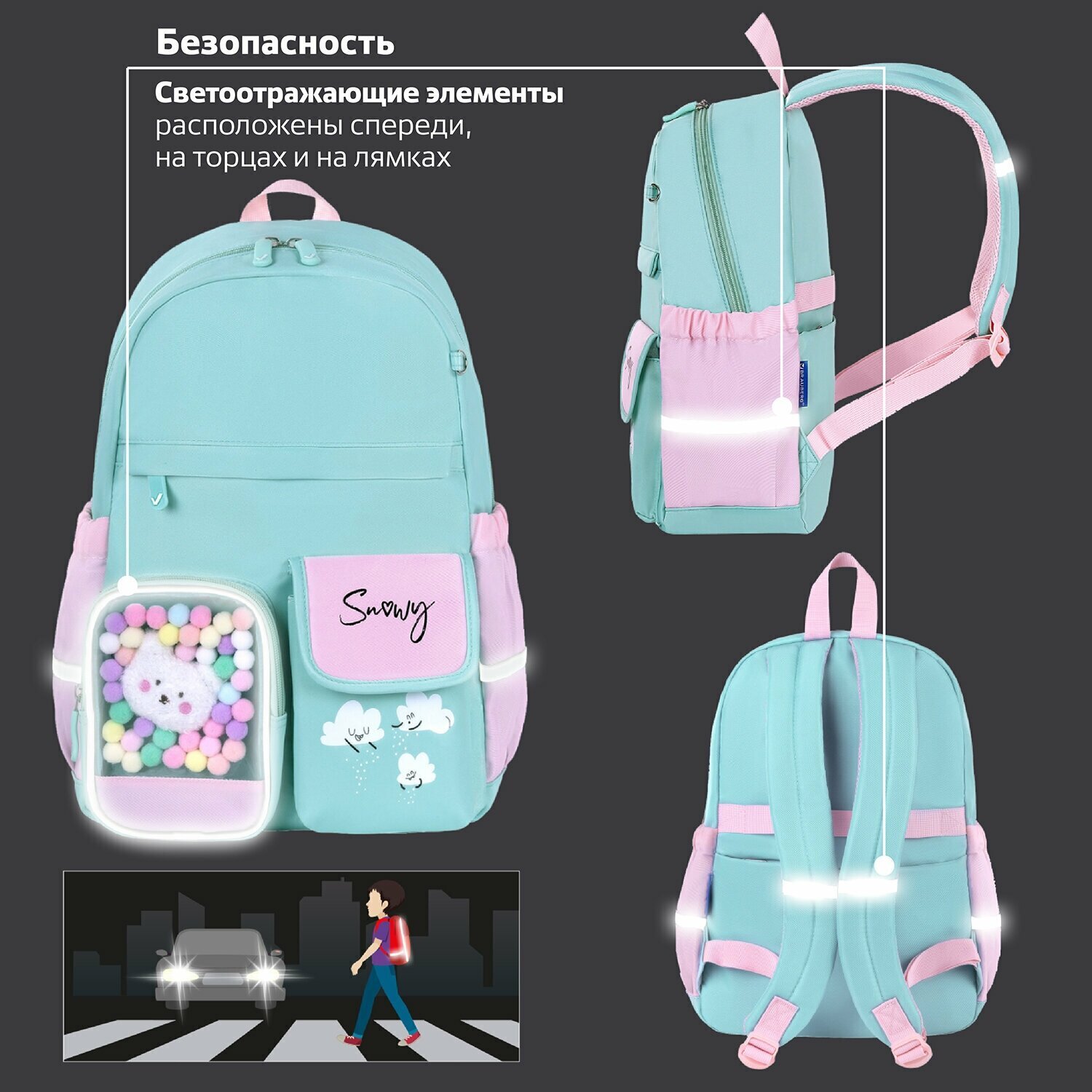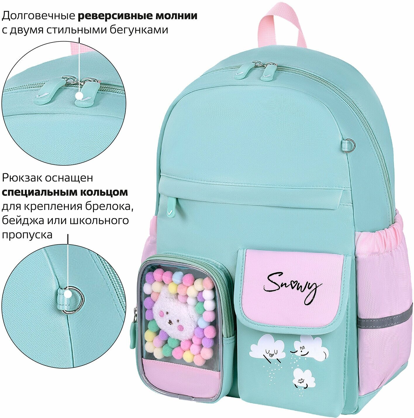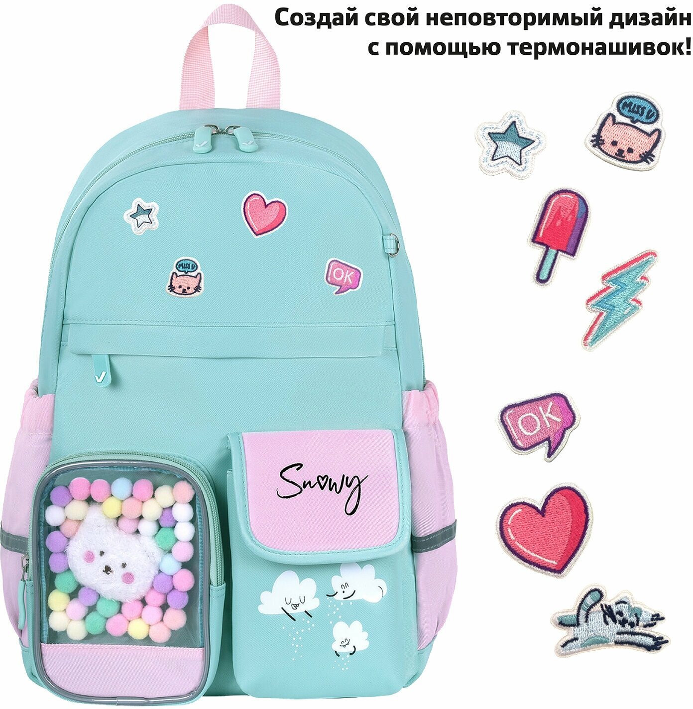 Рюкзак BRAUBERG PASTEL с термонашивками в комплекте, "Funny clouds", мятный, 40х29х14 см, 271421