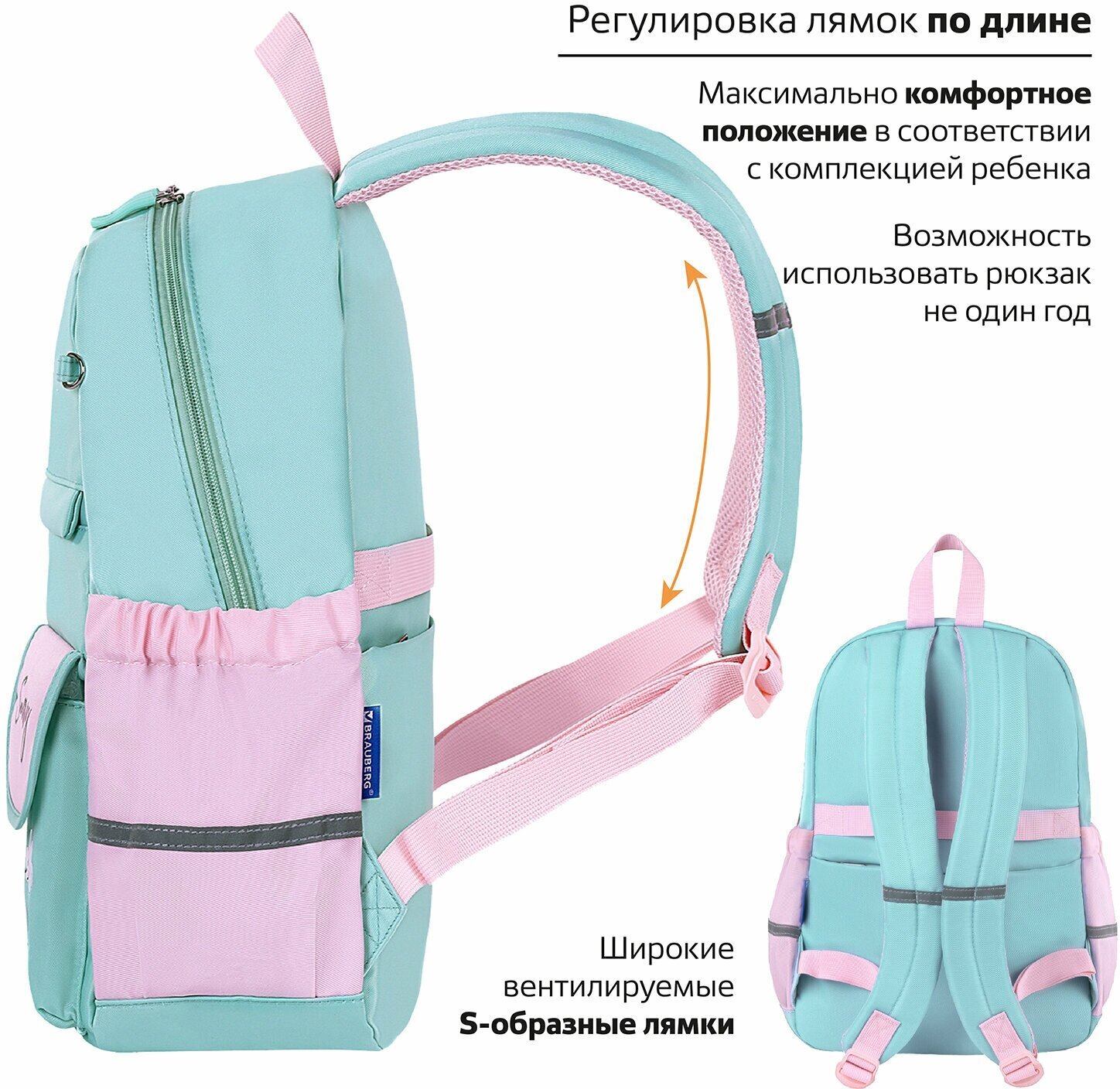 Нежные и воздушные пастельные цвета рюкзаков BRAUBERG PASTEL не оставят равнодушными ни одну юную модницу! Оригинальные и яркие термонашивки делают образ уникальным, а милые плюшевые игрушки в прозрачном кармашке понравятся всем без исключения!Термонашивки в подарок! Возможность создать свой неповторимый дизайн: просто размести термонашивки на рюкзаке и тщательно прогладь утюгом, работающим с паром. За несколько минут можно создать уникальный образ!