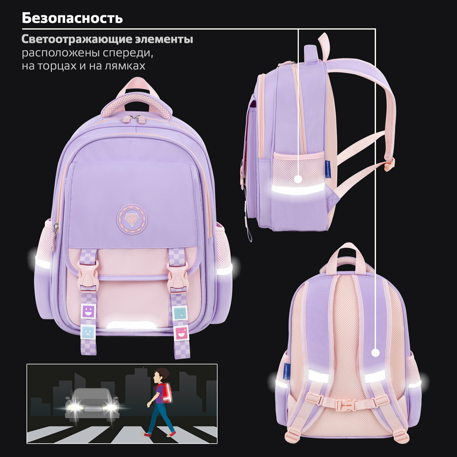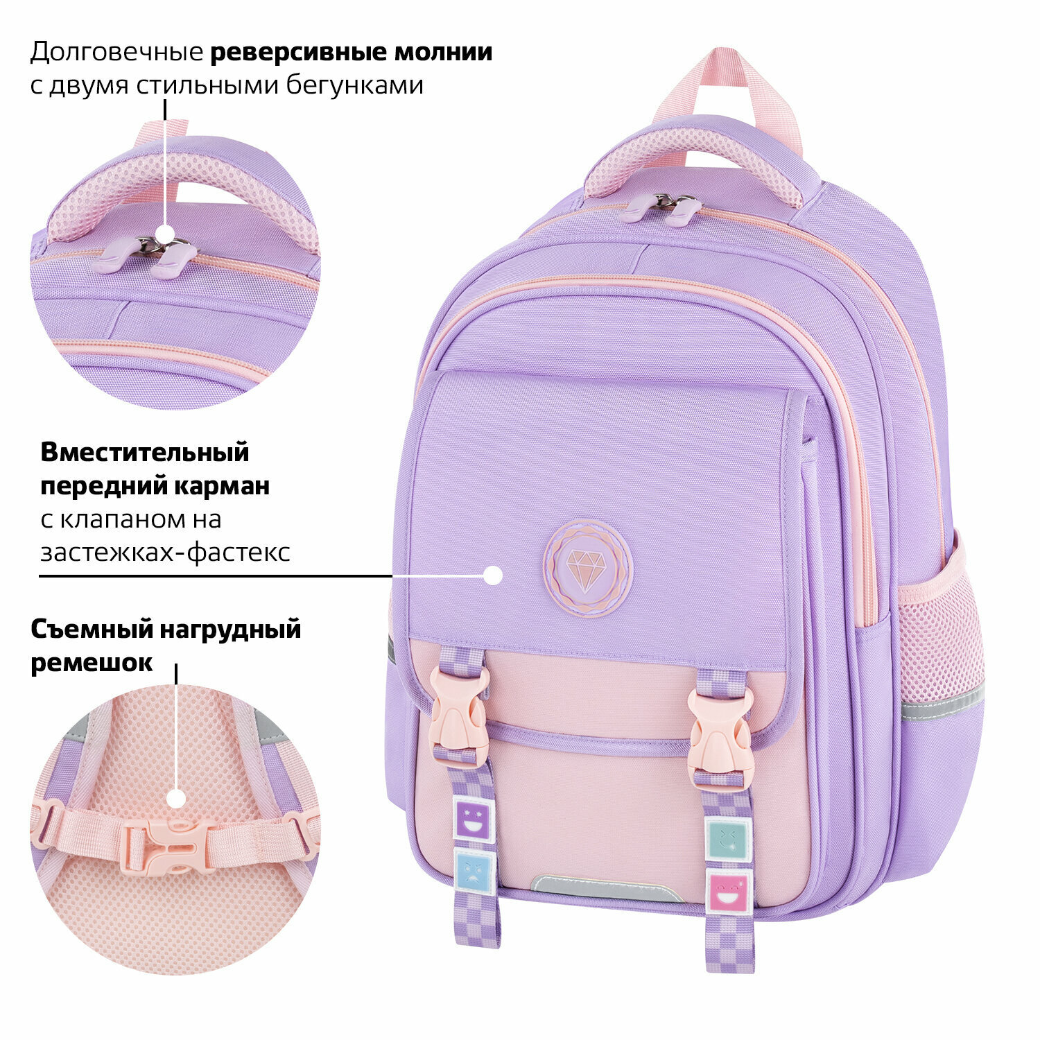 Рюкзак BRAUBERG SNAP, 2 отделения, 3 кармана, "Delicate lilac", 39х28х16 см, 272068