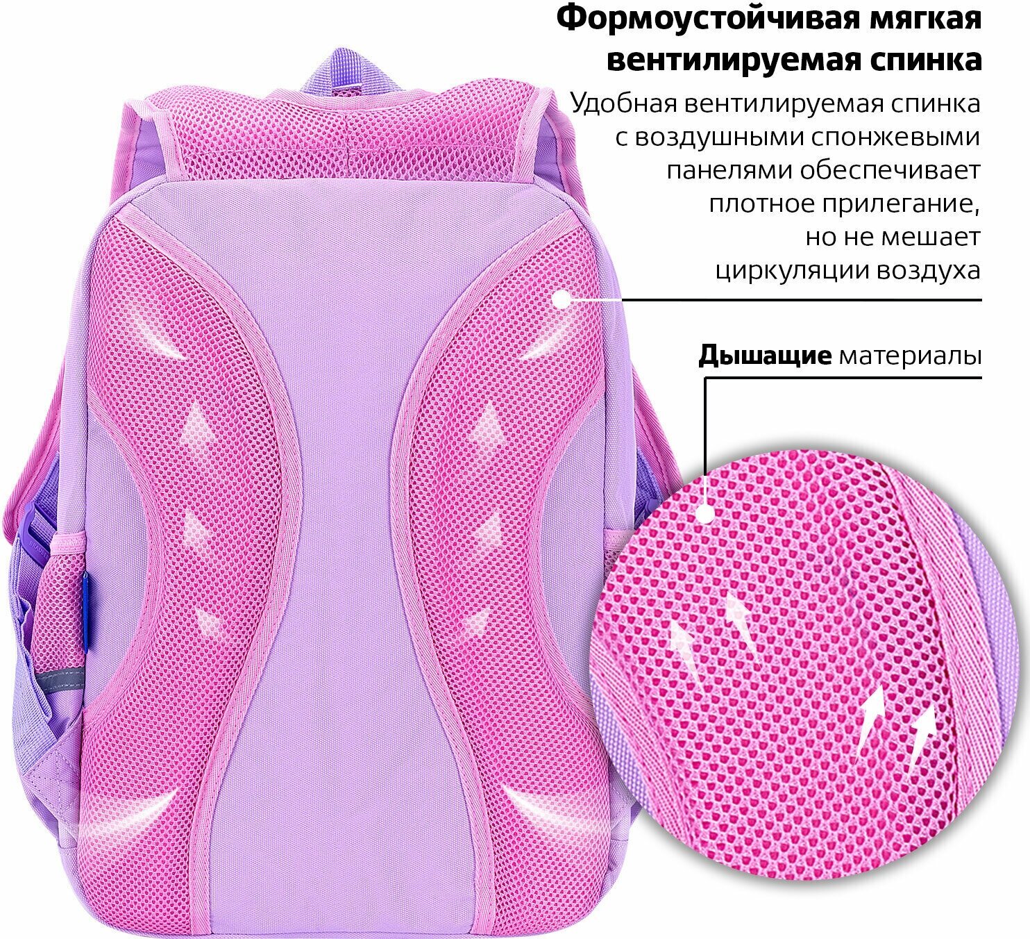 Удобная мягкая вентилируемая спинка с воздушными спонжевыми панелями разработана с учетом анатомических особенностей детей младшего и среднего школьного возраста. В процессе эксплуатации равномерное распределение нагрузки позволит сохранить правильную осанку!