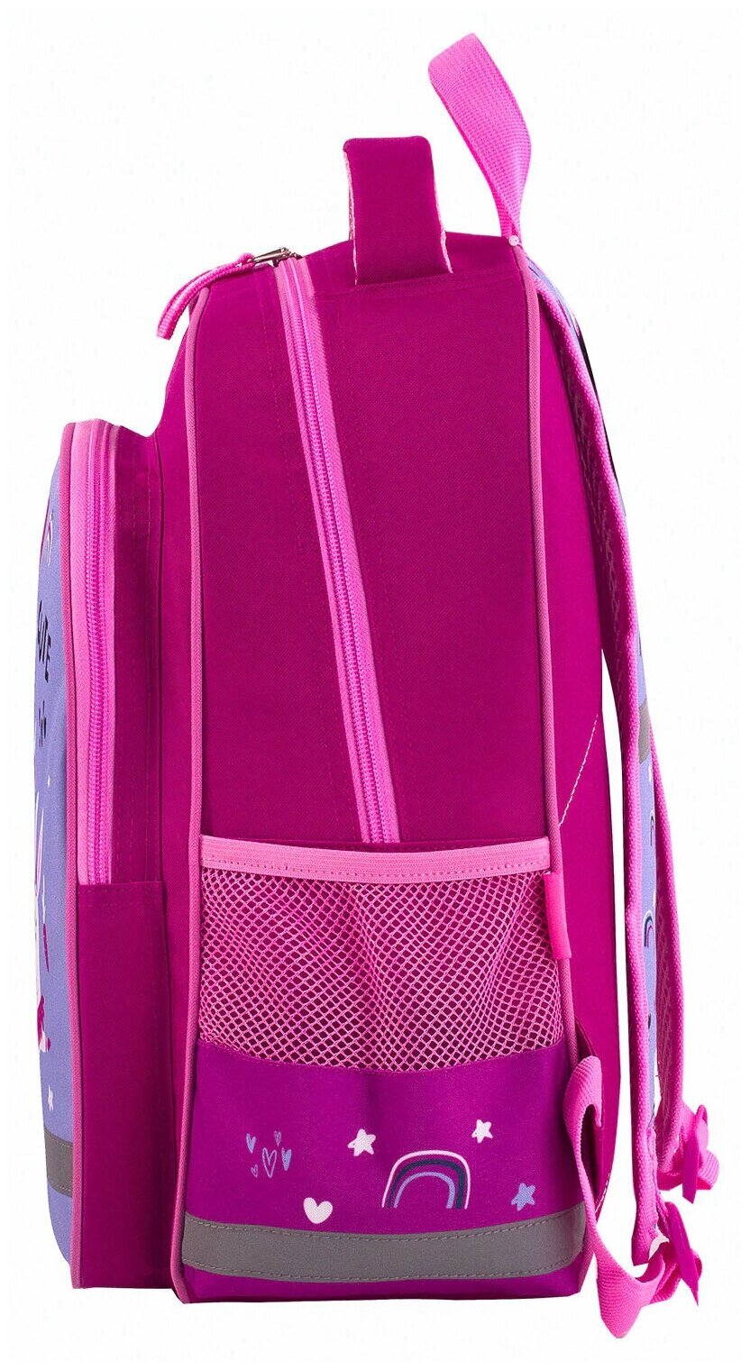Рюкзаки ПИФАГОР серии "SCHOOL" - оптимальное качество по лучшей цене. Предназначен для учениц начальной школы, выполнен из прочного полиэстера. Уплотненная спинка, лямки с внутренней поверхностью из воздушного спонжа обеспечат комфорт при носке.Рюкзак имеет 1 вместительное отделение на молнии, 1 передний и 2 боковых кармана. Оптимальный размер рюкзака позволяет вместить все необходимые школьные принадлежности. Мягкие широкие регулируемые лямки способствуют оптимальному распределению веса.
