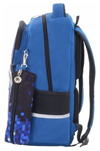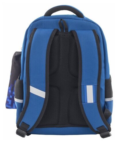 Рюкзак снабжен усиленной ручкой из ткани и петелькой для подвешивания на крючок, а также фиксатором для тетрадей. Светоотражающие элементы с четырех сторон обеспечивают безопасность в темное время суток.